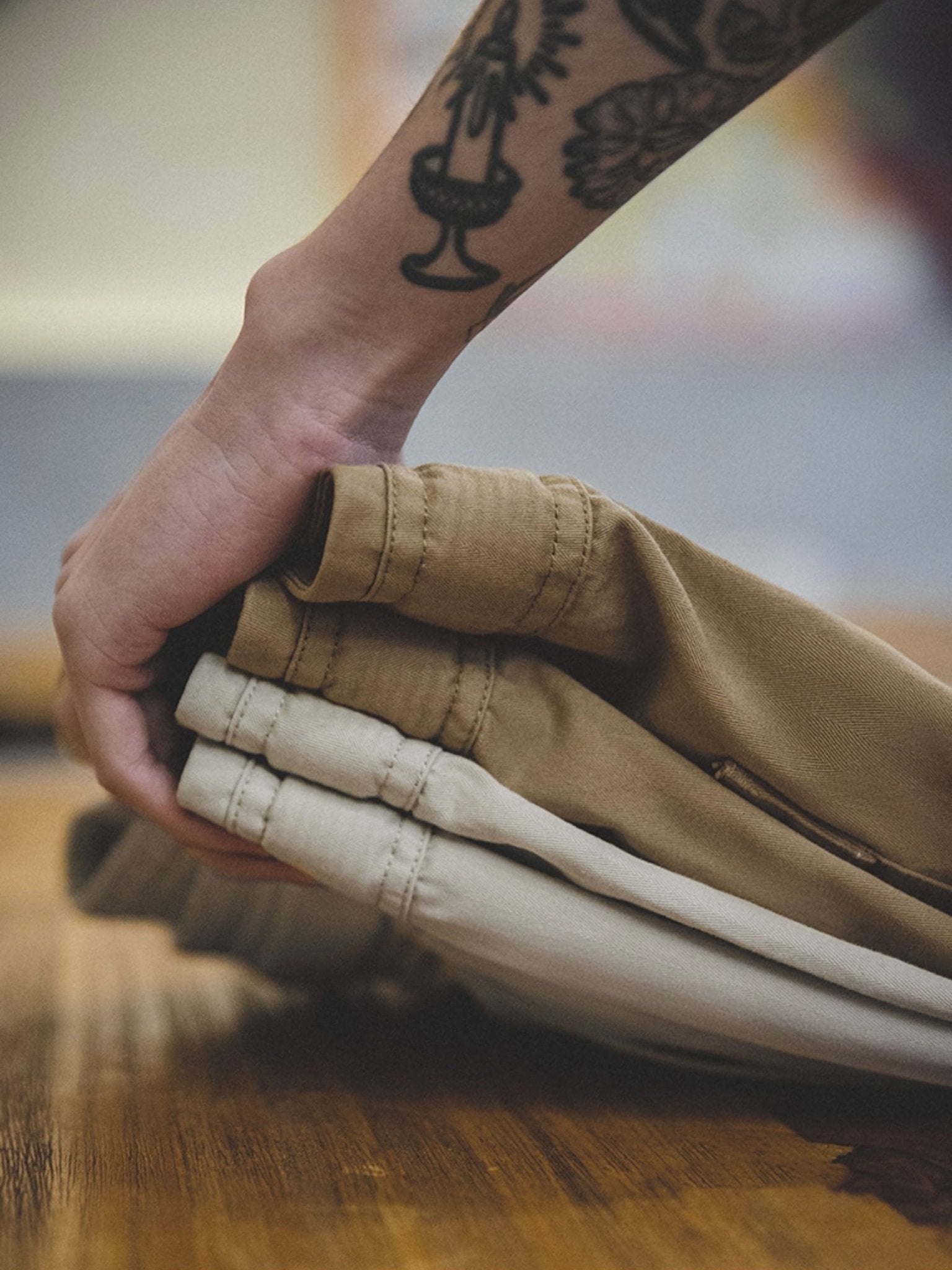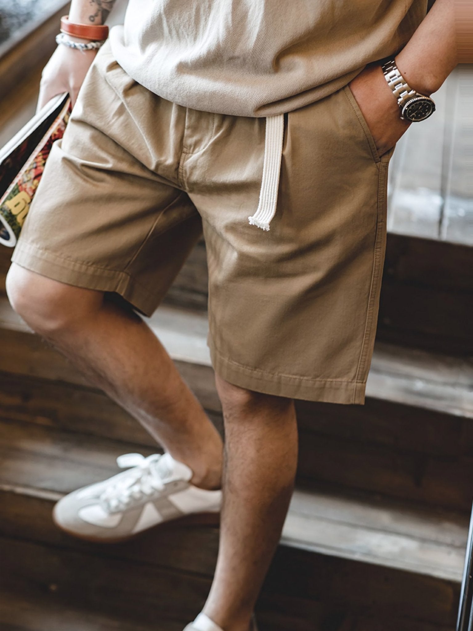 夏には、清潔感のあるソックスとレザーシューズとの組み合わせや、ジャケットやシャツとのコーディネートなど、日常の街着スタイルに活躍する1枚に仕上げました。