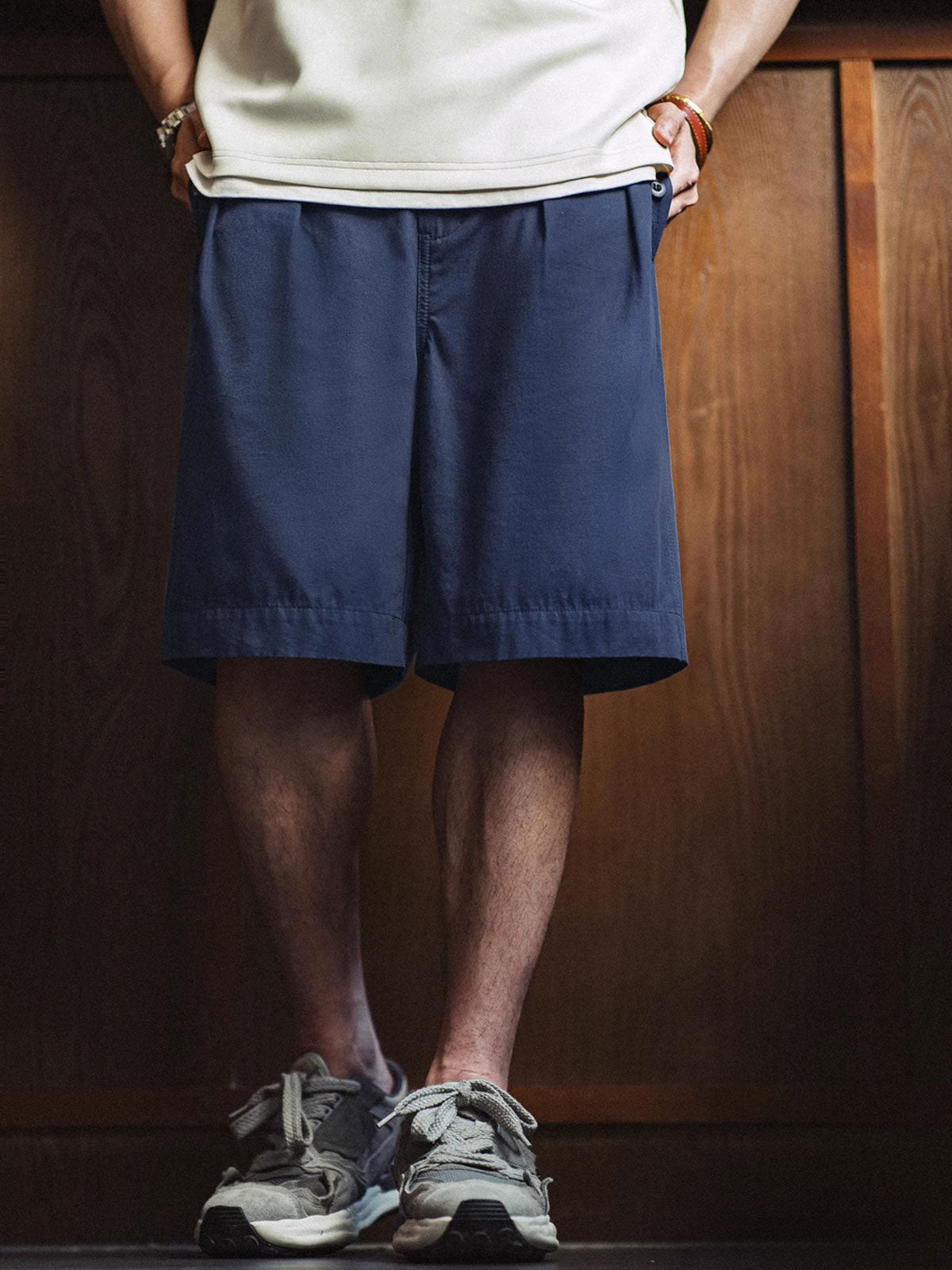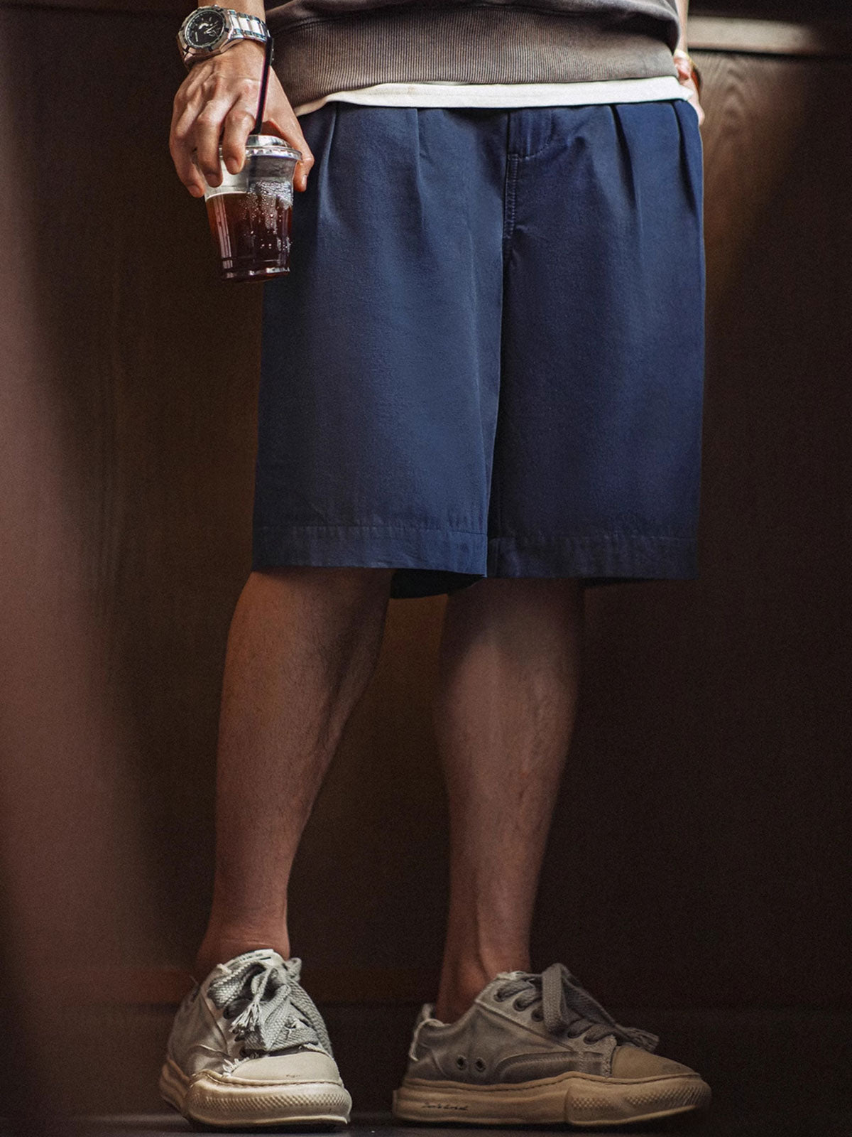 ミリタリーパンツをインスパイアしたカーゴダブルプリーツワークショーツ、夏のスタイリッシュな選択。