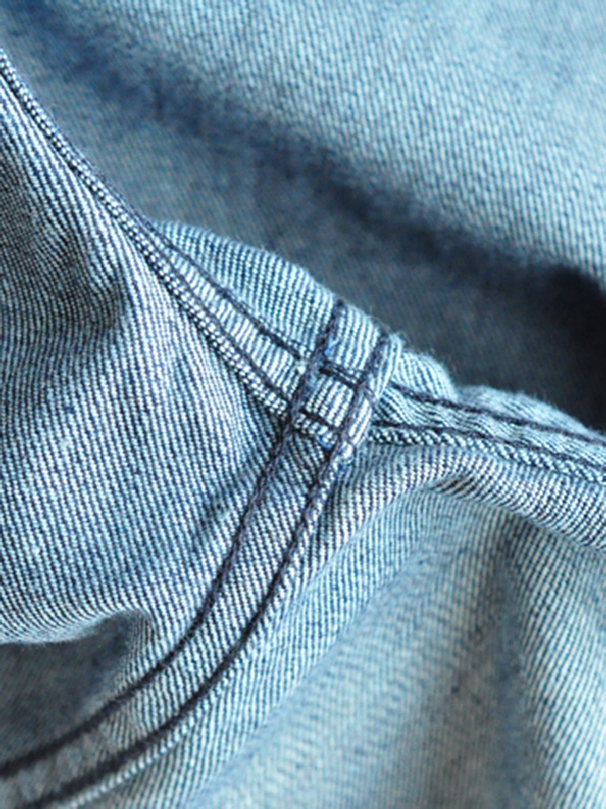 このデニム半纏は、13オンスの赤耳デニムを使用し、ウォッシュ加工を施して柔らかさを引き出しました。深浅の配色デザインにより、視覚的に層次感を生み出し、ヴィンテージ感も漂わせています。内側には便利なダブルポケットが追加され、実用性もアップ。全体に施されたチェーンステッチの縫製が、細部にこだわり丁寧に仕上げられています。クラシックなデザインで、日常のカジュアルスタイルやレイヤードにぴったりのアイテムです。