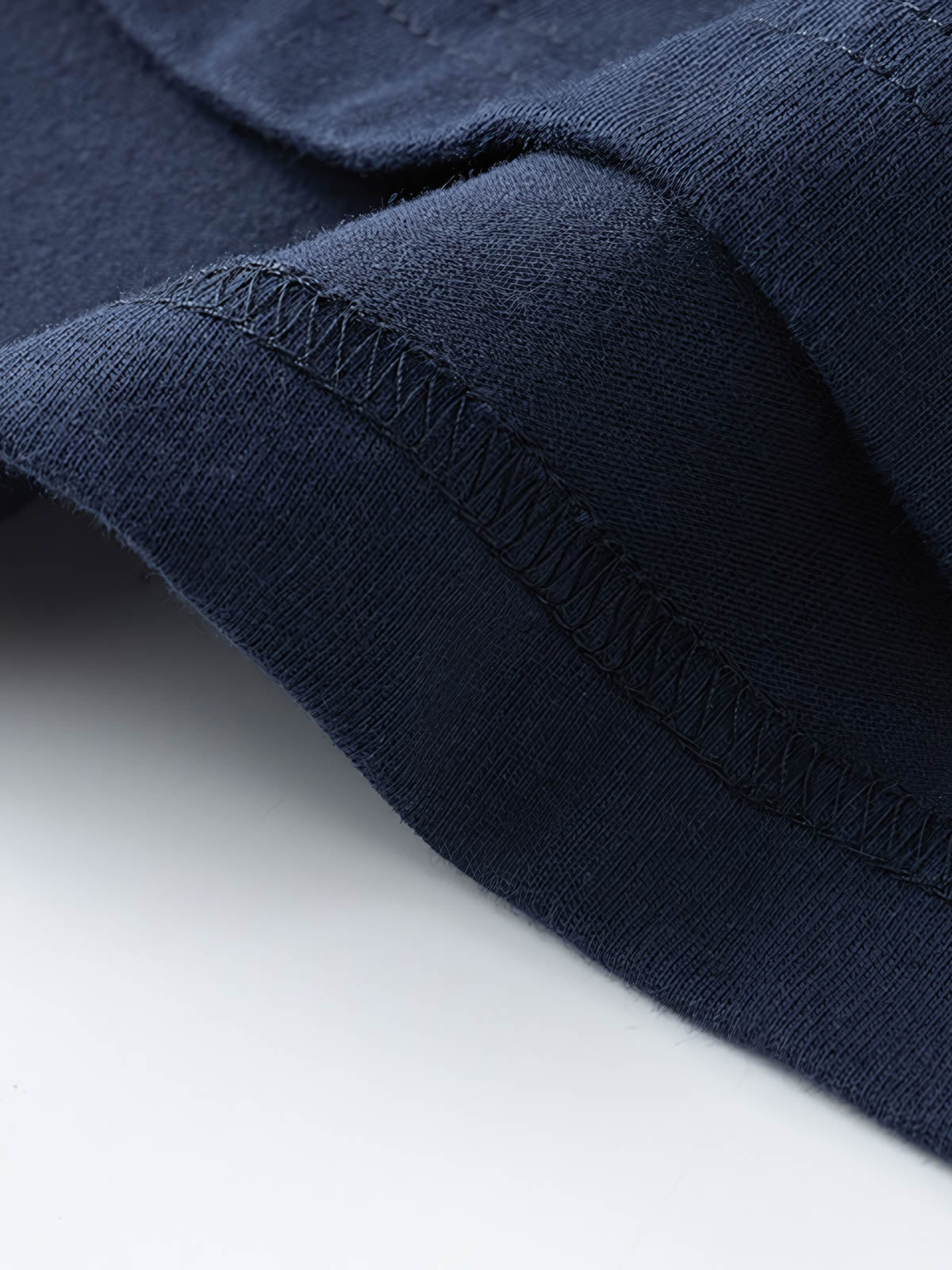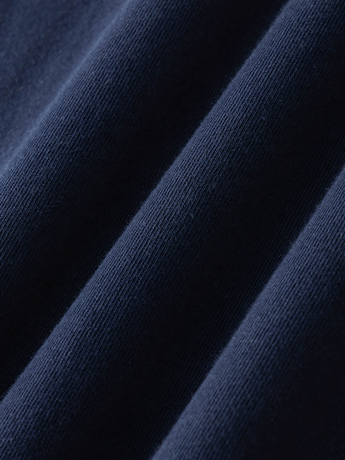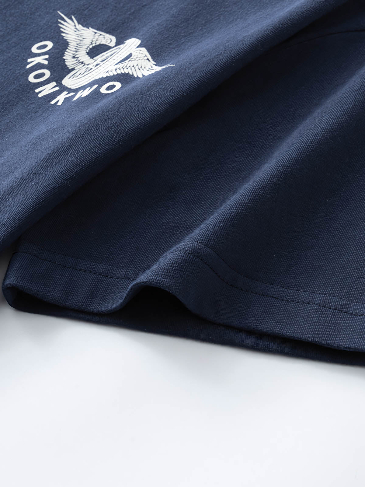 高品質のコットン素材を採用しており、柔らかさと耐久性を実現。白地に深紺のプリントは視覚的に鮮明で、長時間の着用や洗濯に耐えるデザインです。