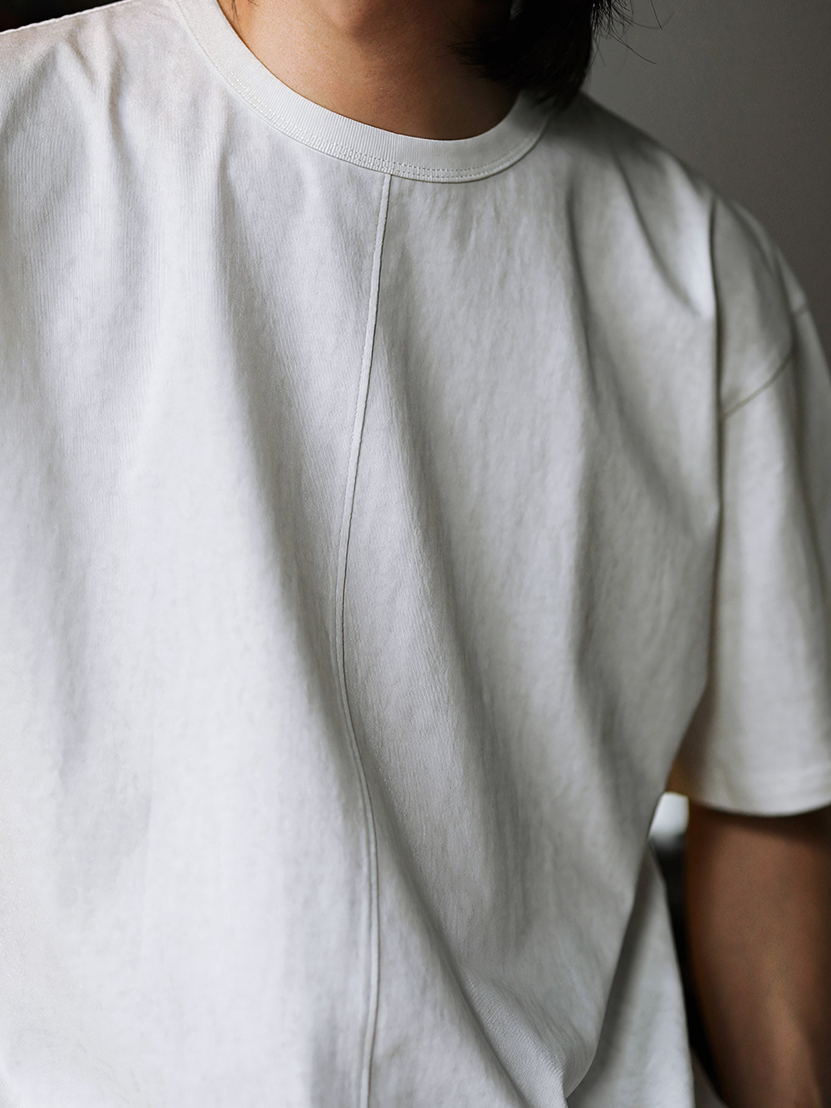 重量感のある230gの40番手二重糸コットンを採用し、優れた耐久性と快適さを実現しています。重みがありながらも美しいドレープを形成し、リラックスフィットのボックス型シルエットが様々な体型に適応し、自由な着心地を提供します。