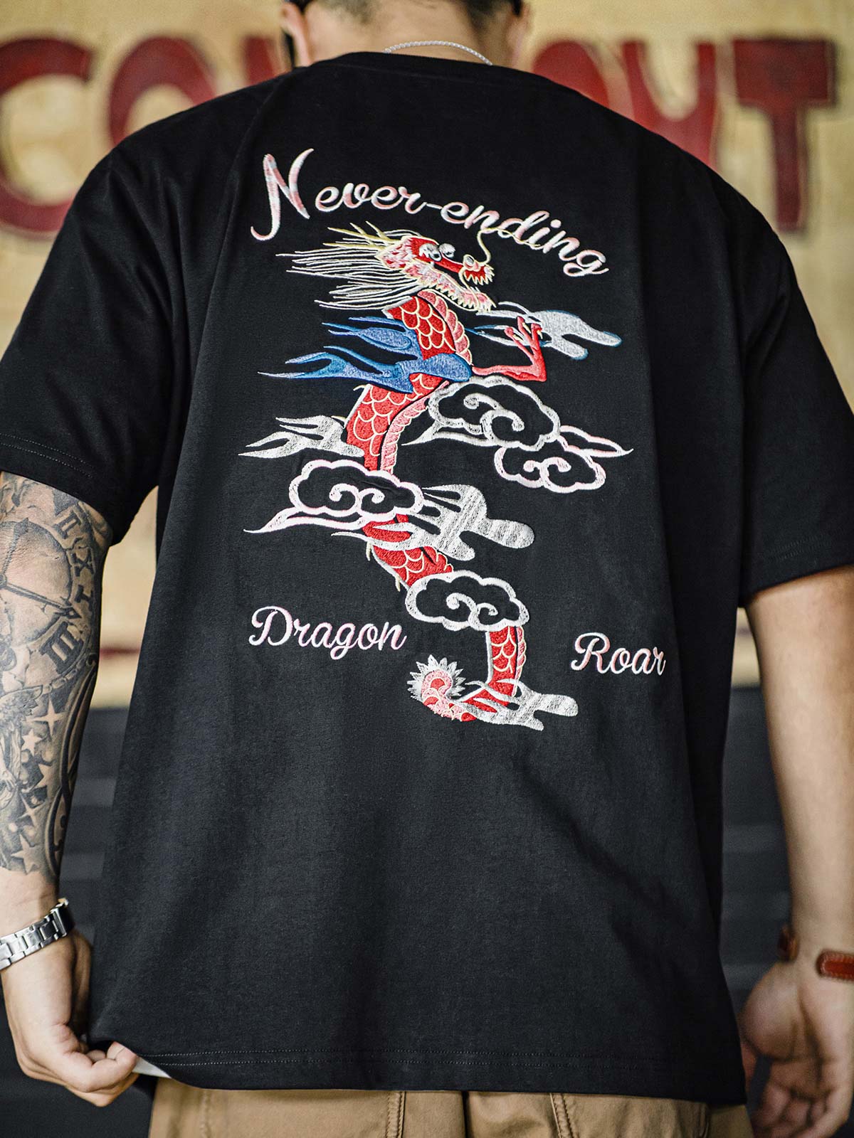 龍年限定の横須賀刺繍を施したヘビーウェイトTシャツ、日常着や記念のコレクションに最適。