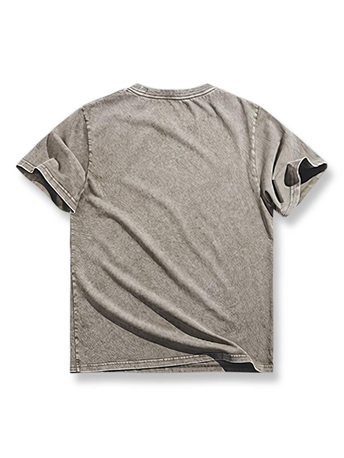 このTシャツは古代のワックス染め技術を採用しており、東南アジアやアフリカの伝統からインスピレーションを受けています。そのユニークな色合いと質感は、現代のカジュアルウェアに特別な一線を画しています。カーキ色はレトロな軍事感を加え、各作品を唯一無二の芸術品として際立たせます。