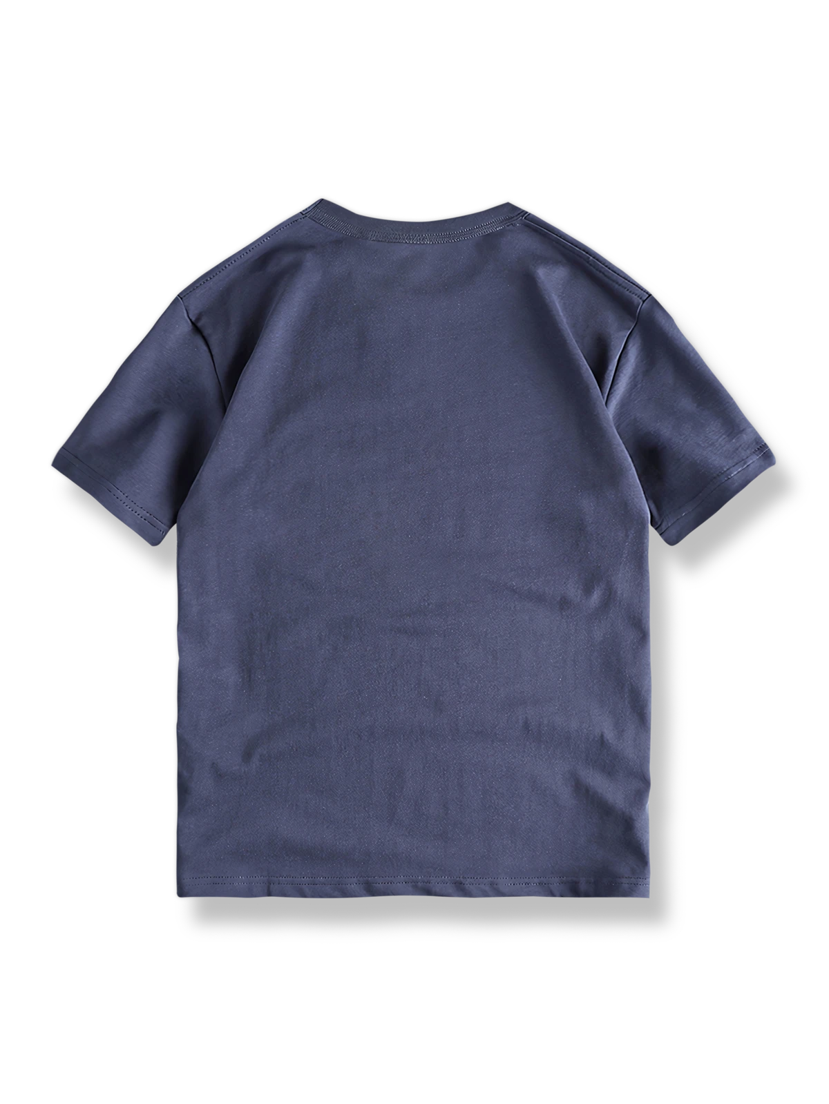 230gのダブルヤーンコットン生地を使用し、快適な着心地と優れた通気性を提供します。クラシックなラウンドネックとややゆったりとしたシルエットで、日常着としても理想的です。