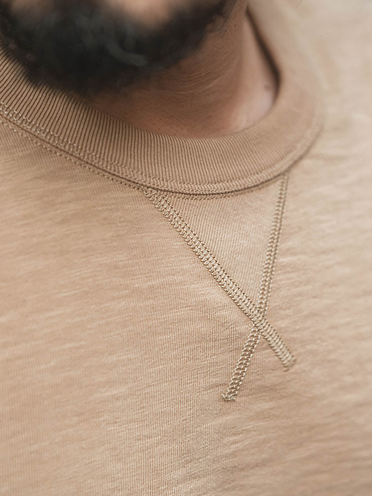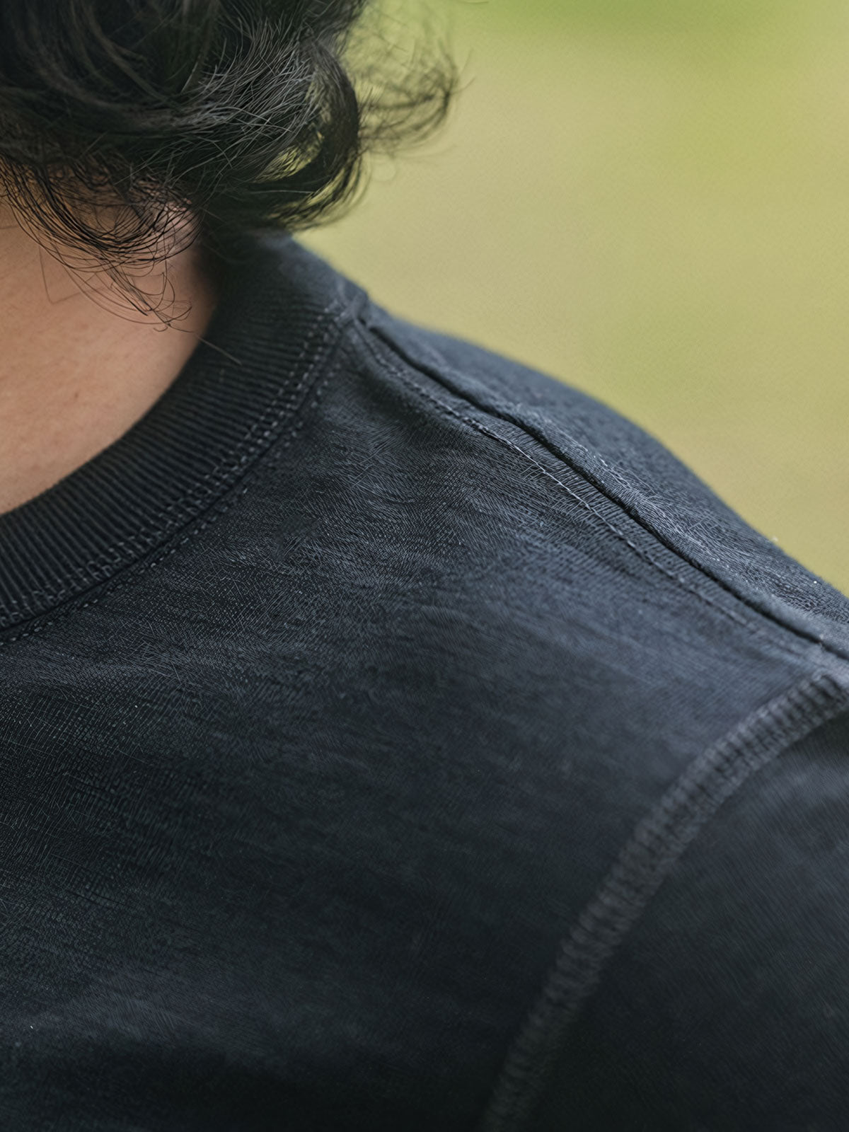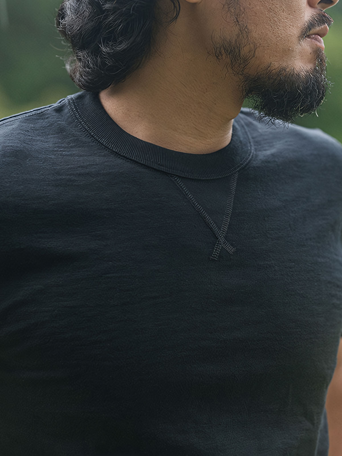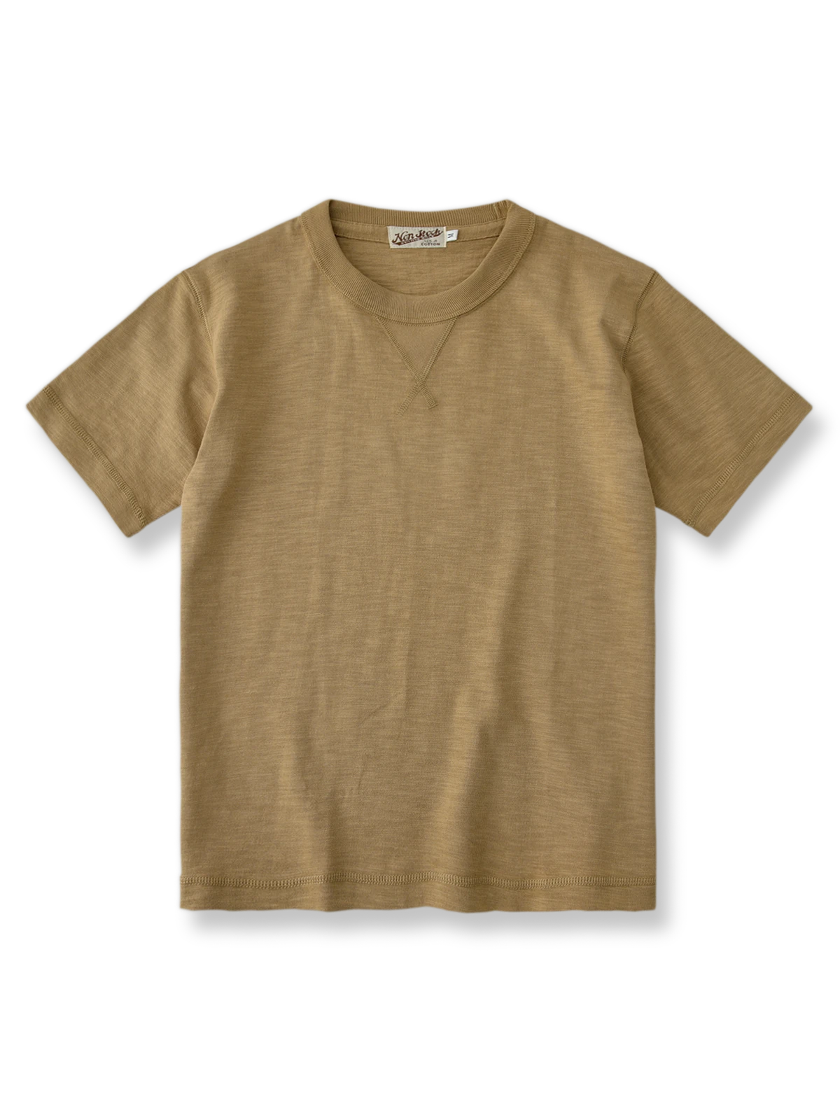 16番手のアメリカンコットンを使用した二重糸で、300グラムのヘビーウェイト生地を採用しています。一般的なTシャツよりも厚手で、優れた手触りと通気性を提供します。サイドシームのないチューブ型カットを採用し、人体工学に基づく設計により快適な着用感を実現しています。
