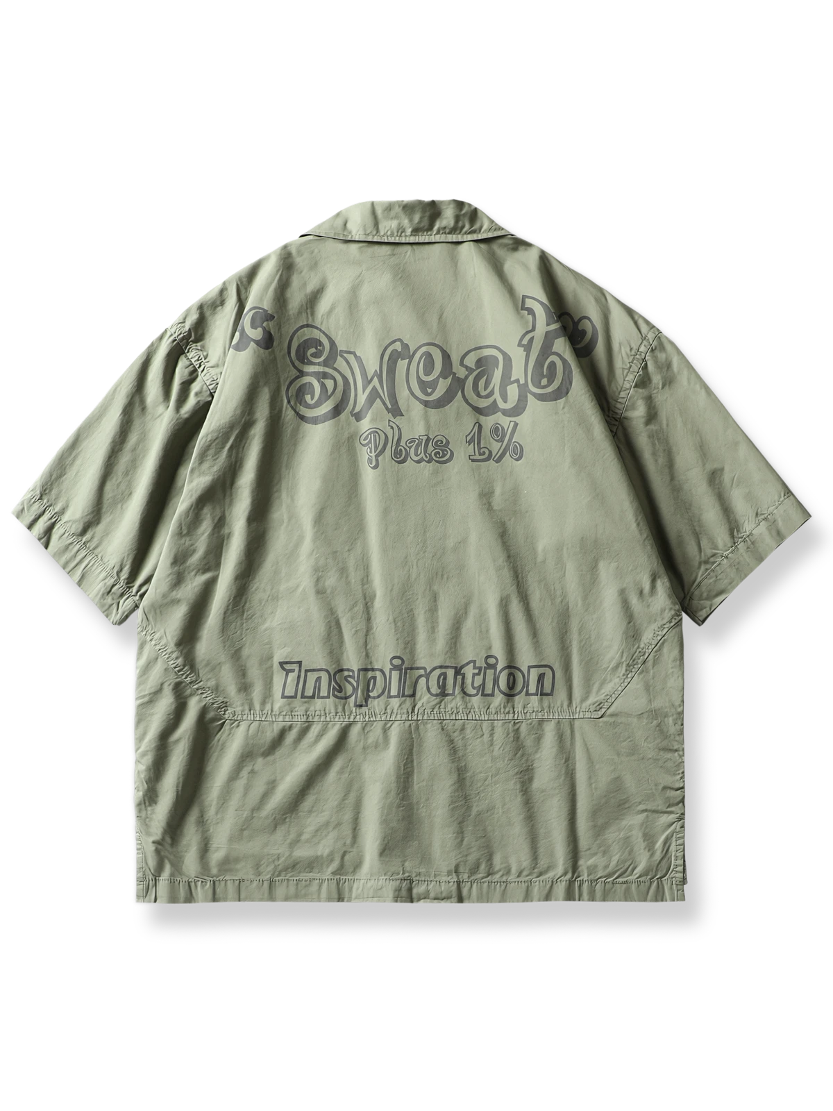 ゆったりとしたドロップショルダーデザインの五分袖ワークシャツで、カジュアルで実用的なスタイルを簡単に演出。