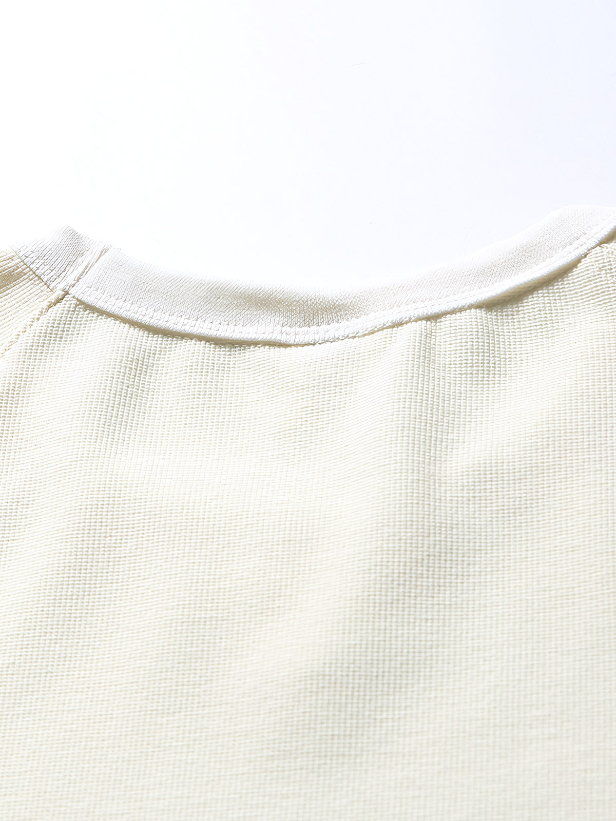 クラシックなワッフルデザインと胸ポケットが特徴のヴィンテージ風半袖Tシャツ。