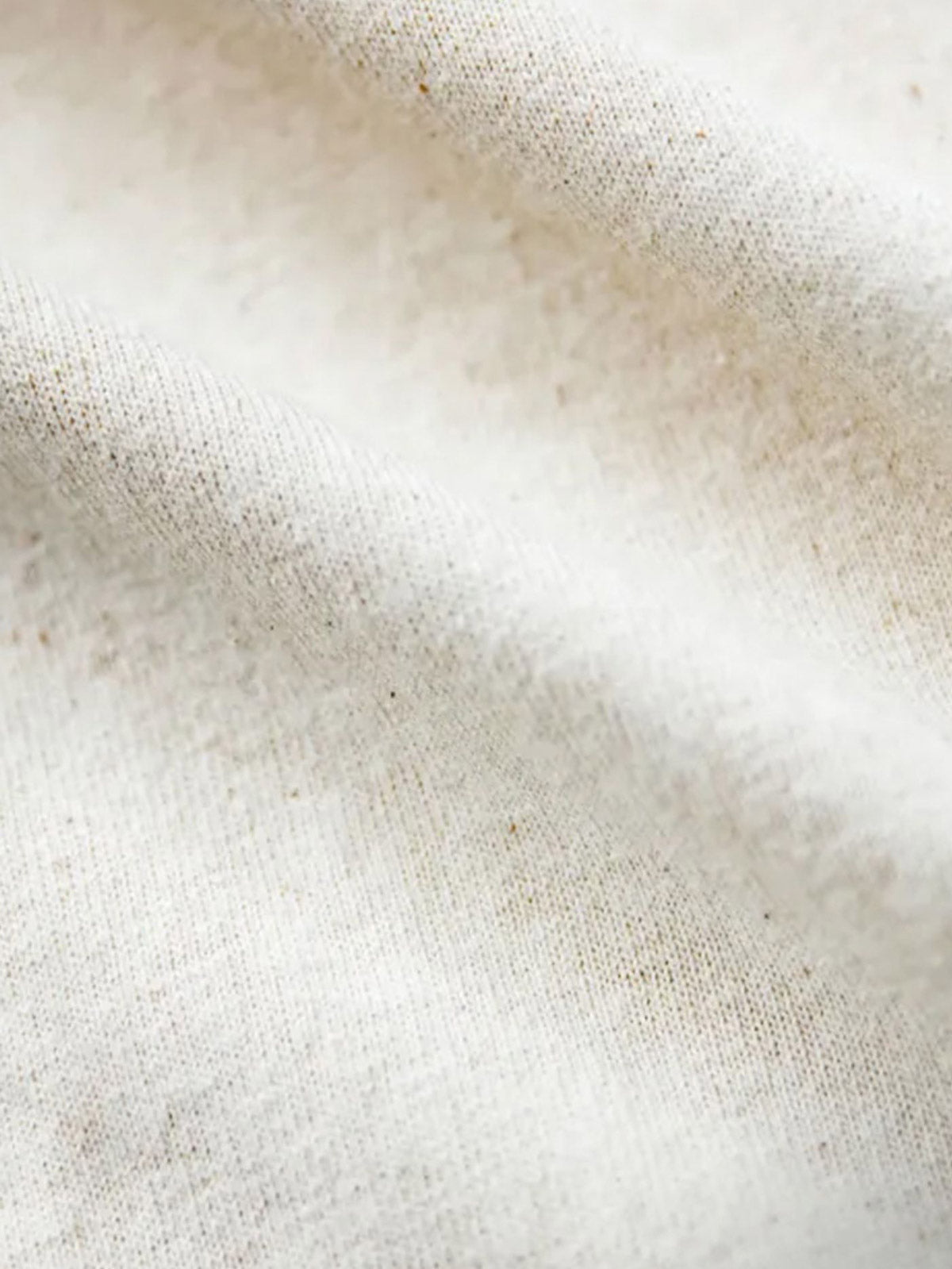 中等の重さ250g/m²の生地を使用しており、綿の殻を含むユニークな質感が、自然で快適な着用感を実現しています。この生地は様々なカジュアルシーンに適しており、日常的な活動に最適です。