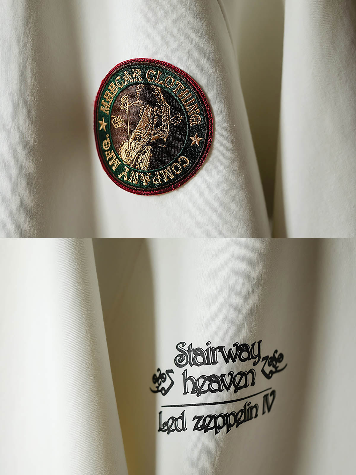 ロックミュージックのパイオニア、ツェッペリン飛行船への敬意を込めたこのTシャツは、特にギタリスト、ジミー・ペイジの伝説的なキャリアと彼の独特な中世黒魔術スタイルの音楽に焦点を当てています。Tシャツの前面には象徴的なバッジを刺繍し、背面には「天国への階段」というバンドの代表曲を配して、純粋なロックスピリットを表現しています。