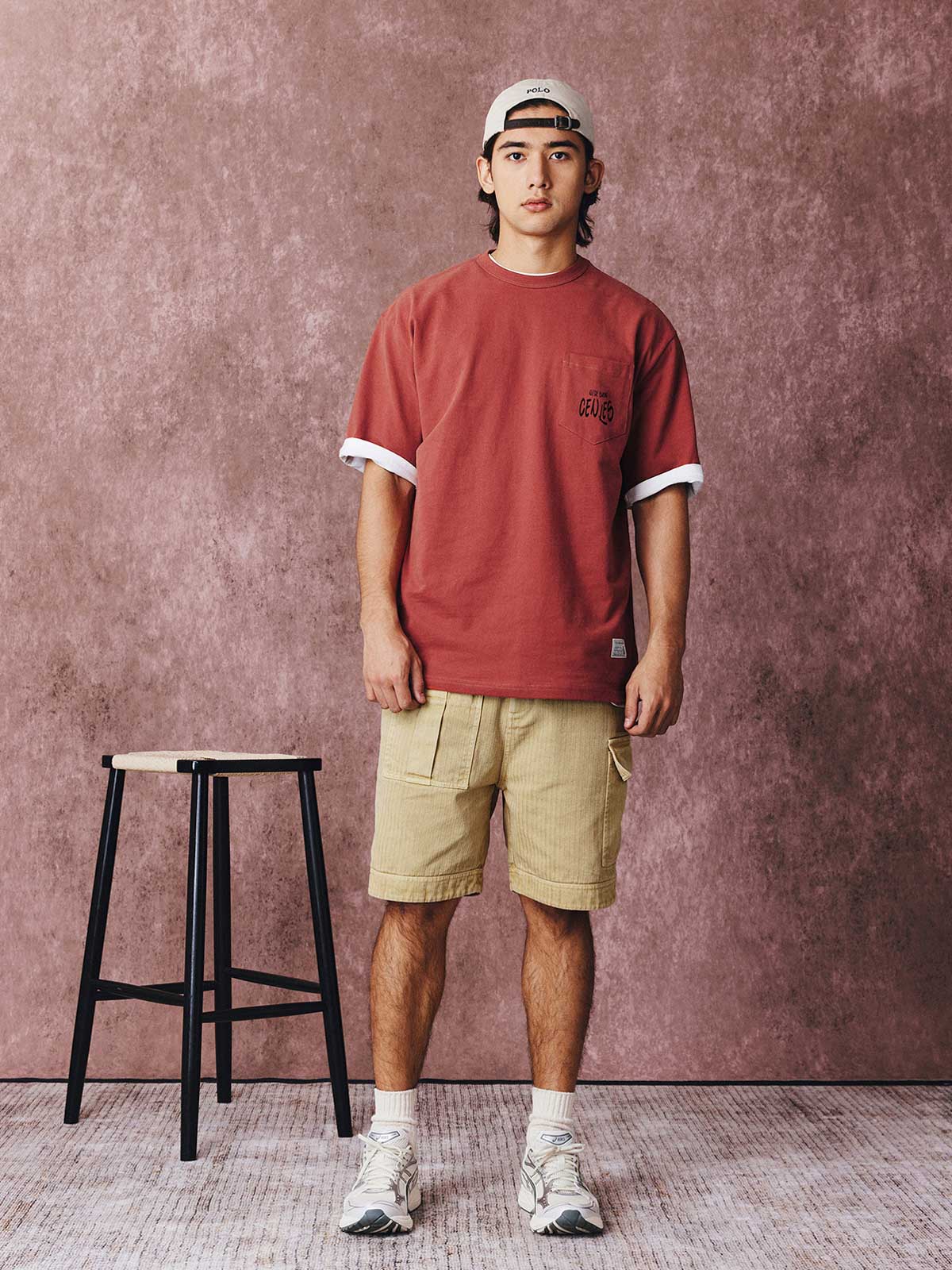 270Gのニットコットン素材を使用しており、柔らかく耐久性に富み、軽いフランネル感が特徴です。リラックスフィットで、ドロップショルダーのデザインがカジュアルな印象を強調し、スモールカラーと混紡ダブルリブの襟が快適な着心地と形状保持を提供します。