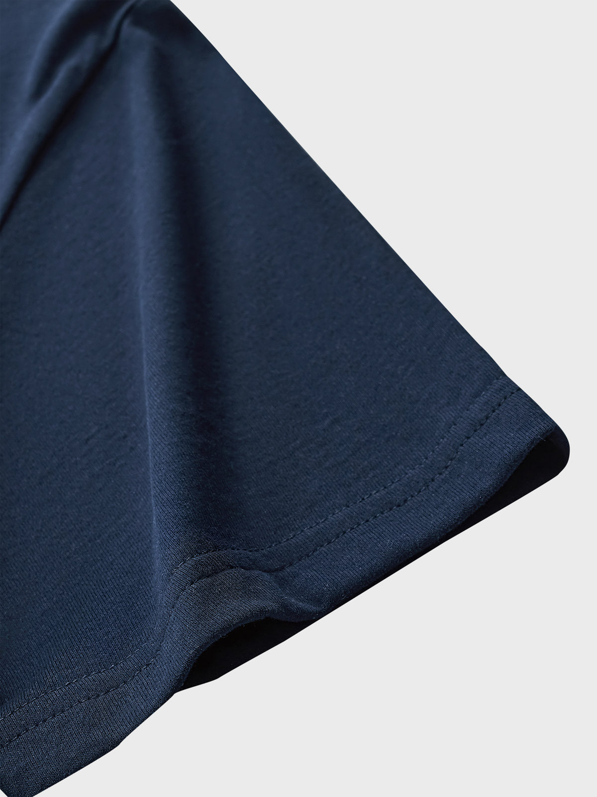 クラシックなクルーネックと標準的なフィット感が快適な着用感を提供します。肩と袖のラインは自然体のシルエットを強調し、日常着に適しています。