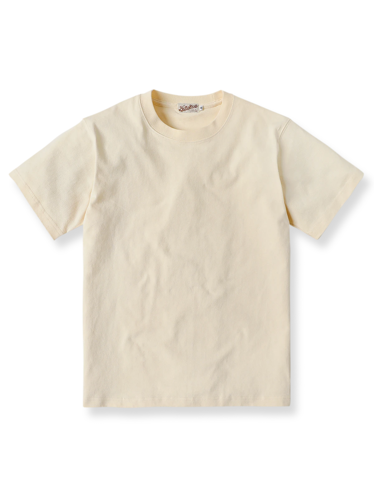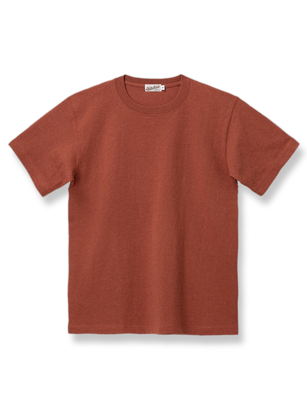この半袖Tシャツは、「アメリカンクラシックスタイルの再解釈」というテーマのもと、厚手のアメリカンコットンを使用し、アメリカの伝統的なカジュアルウェアに敬意を表しています。260gの21番手双糸を採用することで、Championや古き良き日本製Tシャツに見られる素朴で耐久性のある質感を再現しており、工業時代初期の服装への憧れとリスペクトを表現しています。