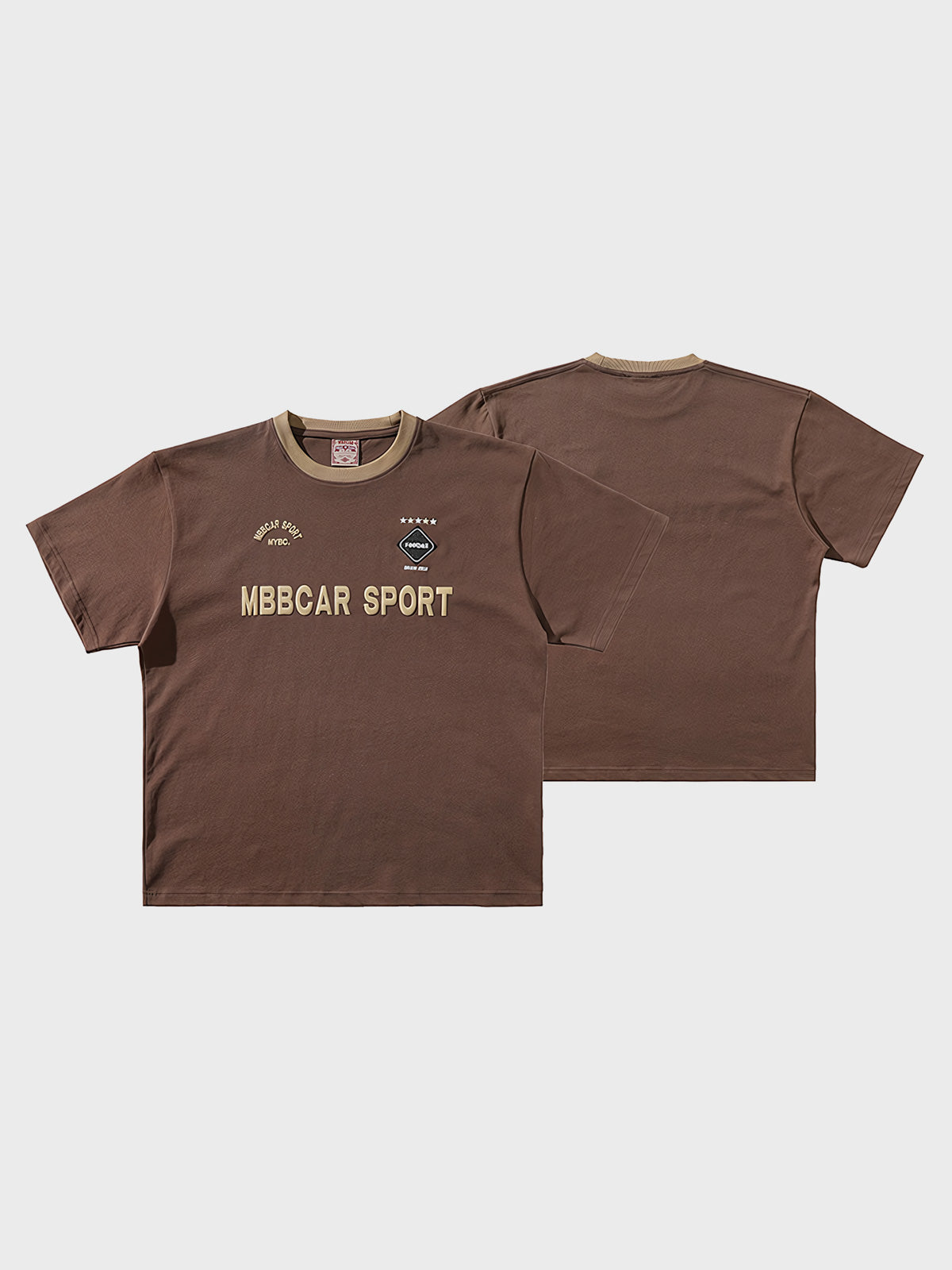 このTシャツは、270グラムのダブルヤーン平織り生地を使用し、100%コットンで快適で通気性に優れています。ヴィンテージジャージの配色を採用し、大地色とライトカラーのリブが特徴です。プリント工芸には発泡プリントと高密度のサテンステッチ刺繍を使用し、若々しくヴィンテージな印象を与えます。シルエットは短めのワイドフィットで、裾にはウエストを絞るカットが施され、裾がめくれ上がるのを防ぎます。リブ部分は引き締め工芸を使用し、ダブルステッチで縫製されており、頑丈で変形しにくいです。肩と背中のネックラインにはバインディングとチェーンステッチが施され、耐久性と美しさを向上させています。