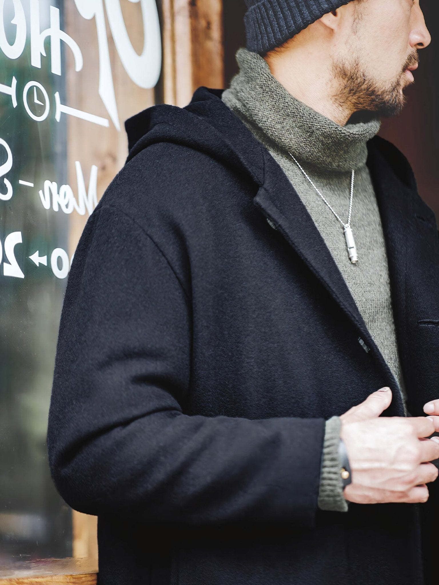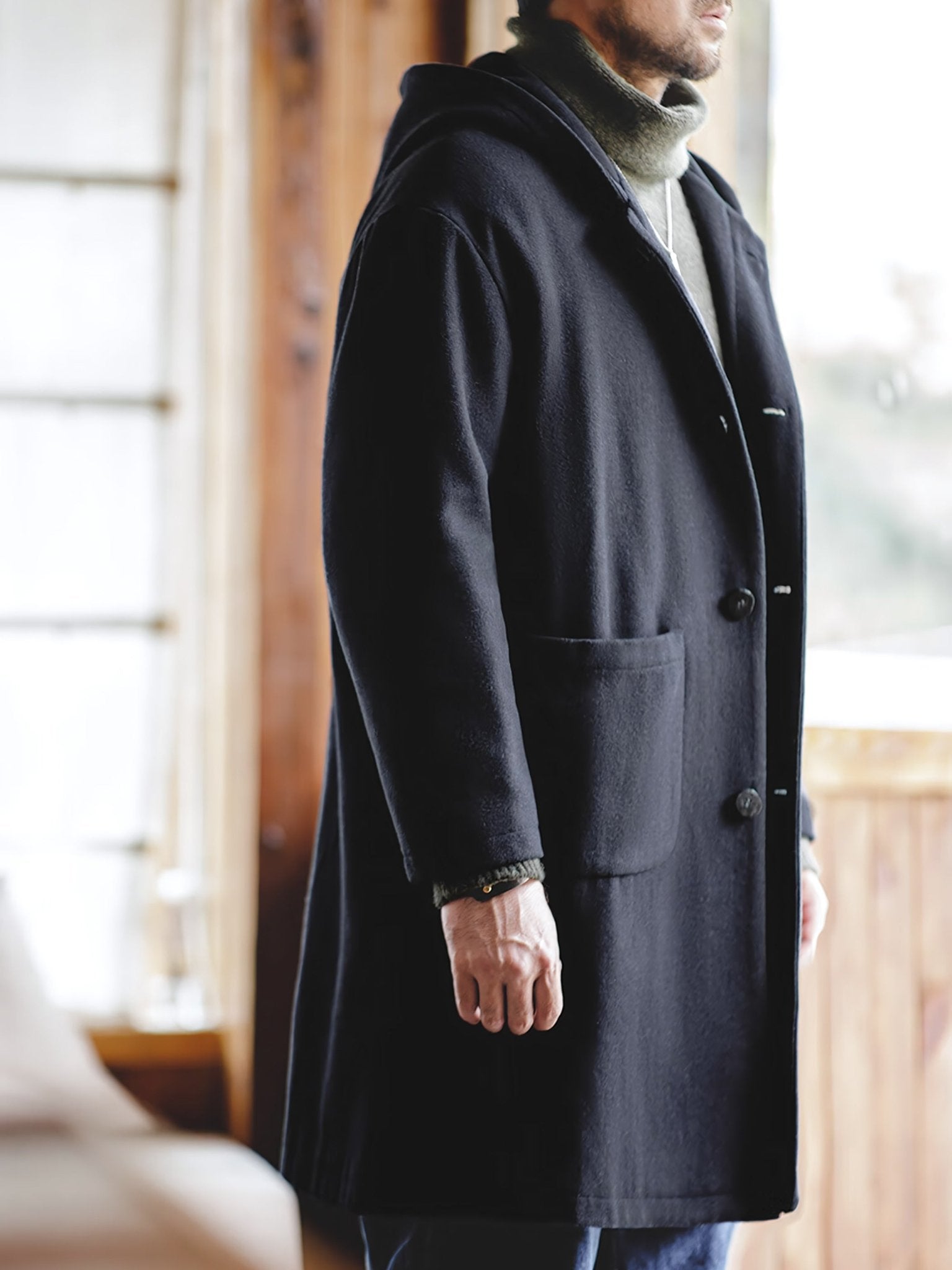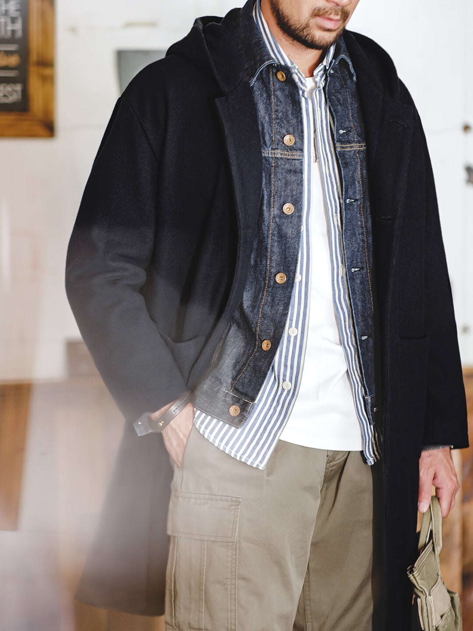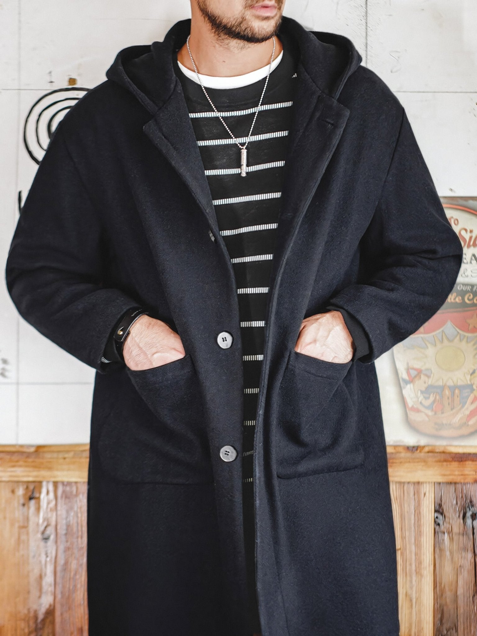 アイビールックスタイルのロングコート!ミニマリストで洗練されたデザインが際立っています。