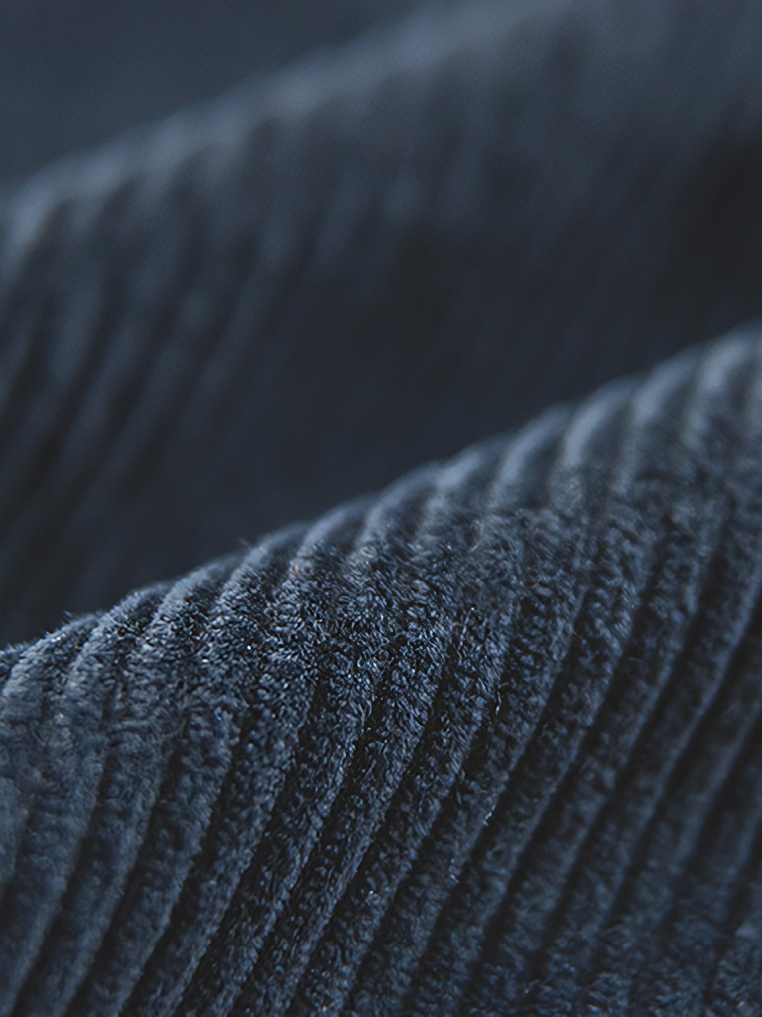 秋冬の雰囲気を演出するコーデュロイ素材は、独特の毛羽立ちから生まれる光沢、柔らかい色合い、そして素材の凹凸感が魅力的です。また、保温効果も高いのが大きな特長です。ニットとも相