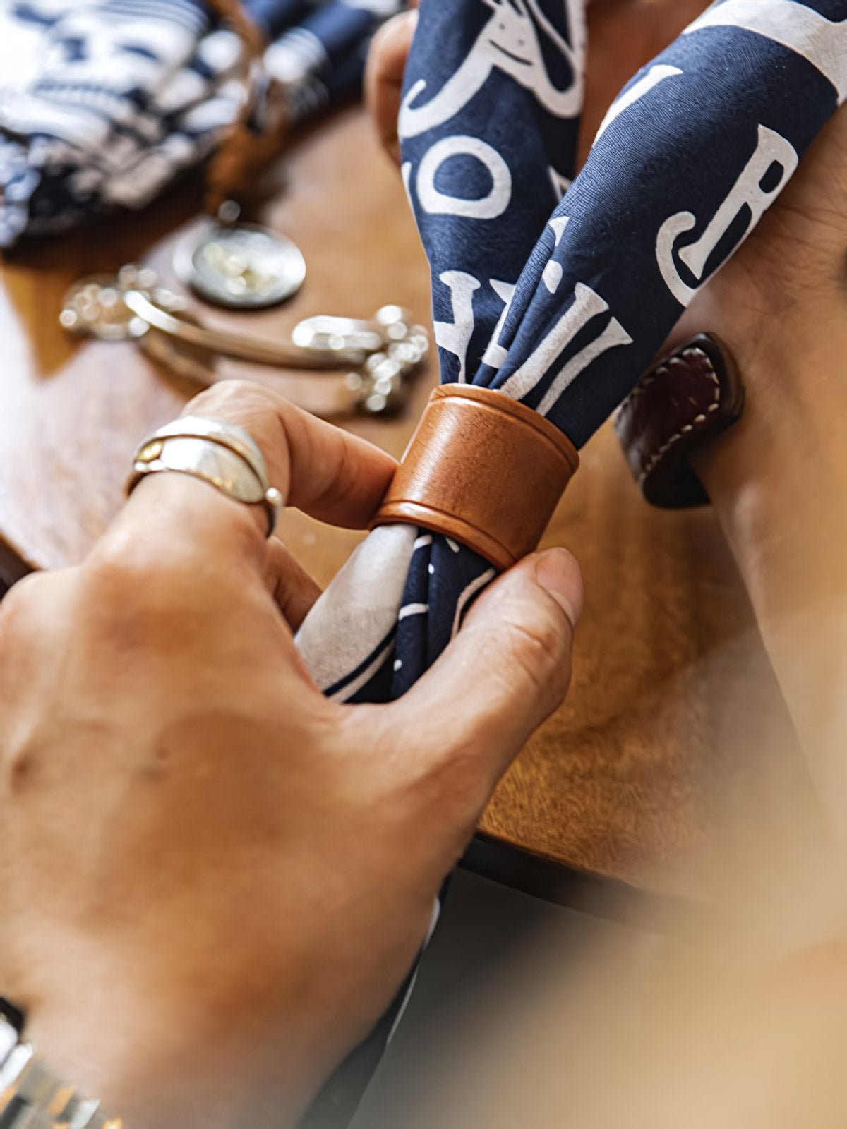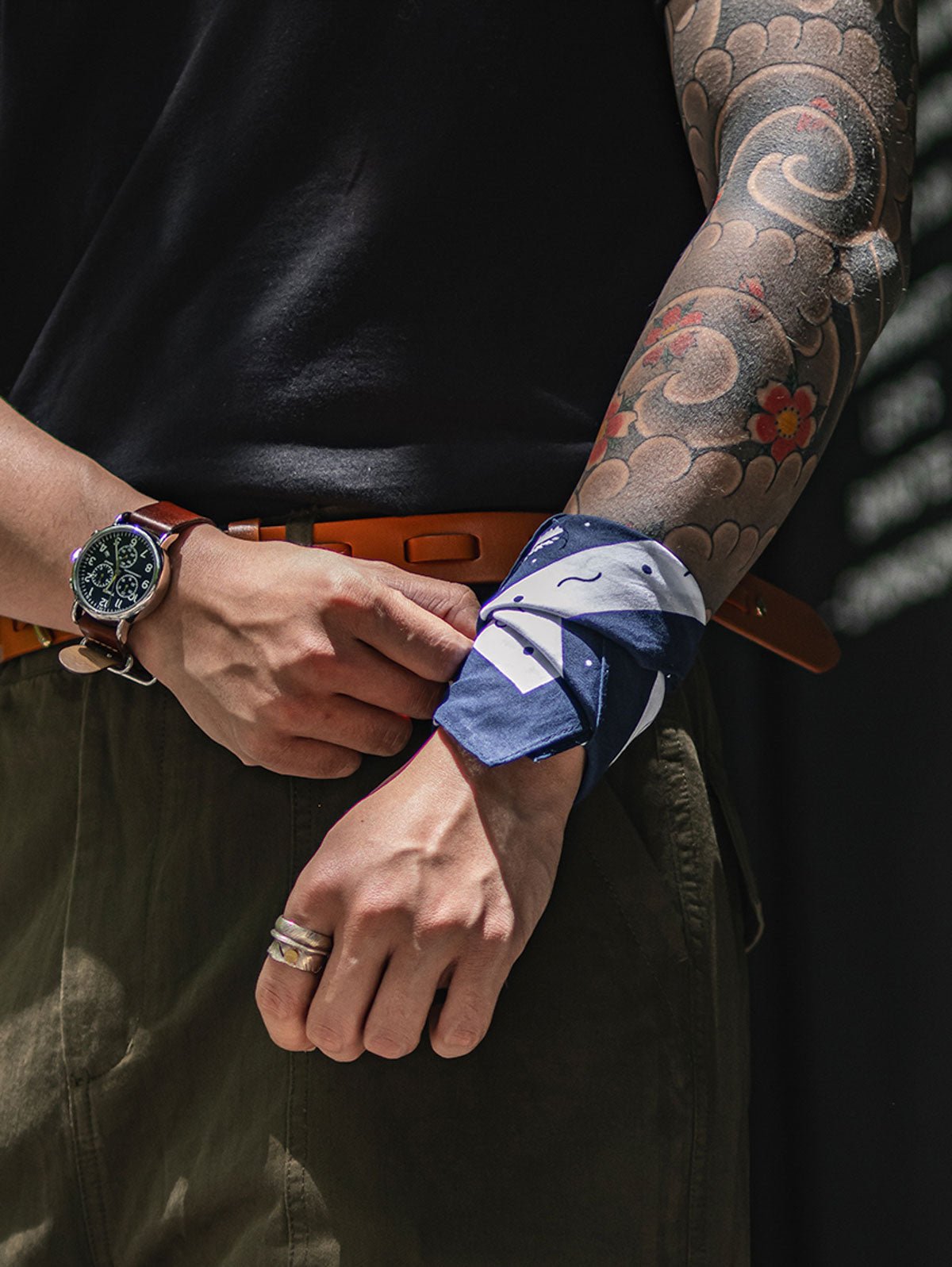 このバンダナは、西部カウボーイをテーマにし、自由と冒険の精神を表現しています。