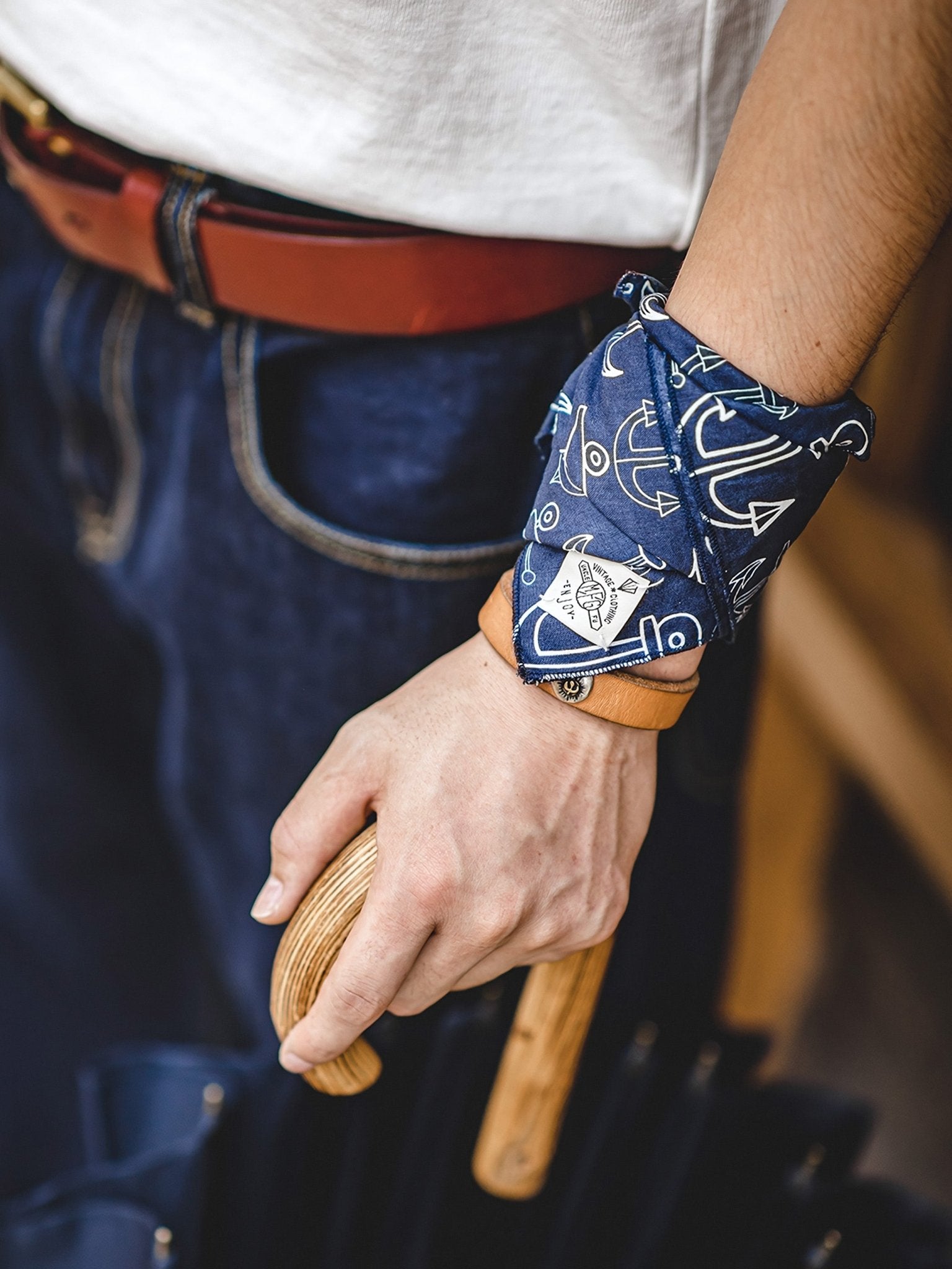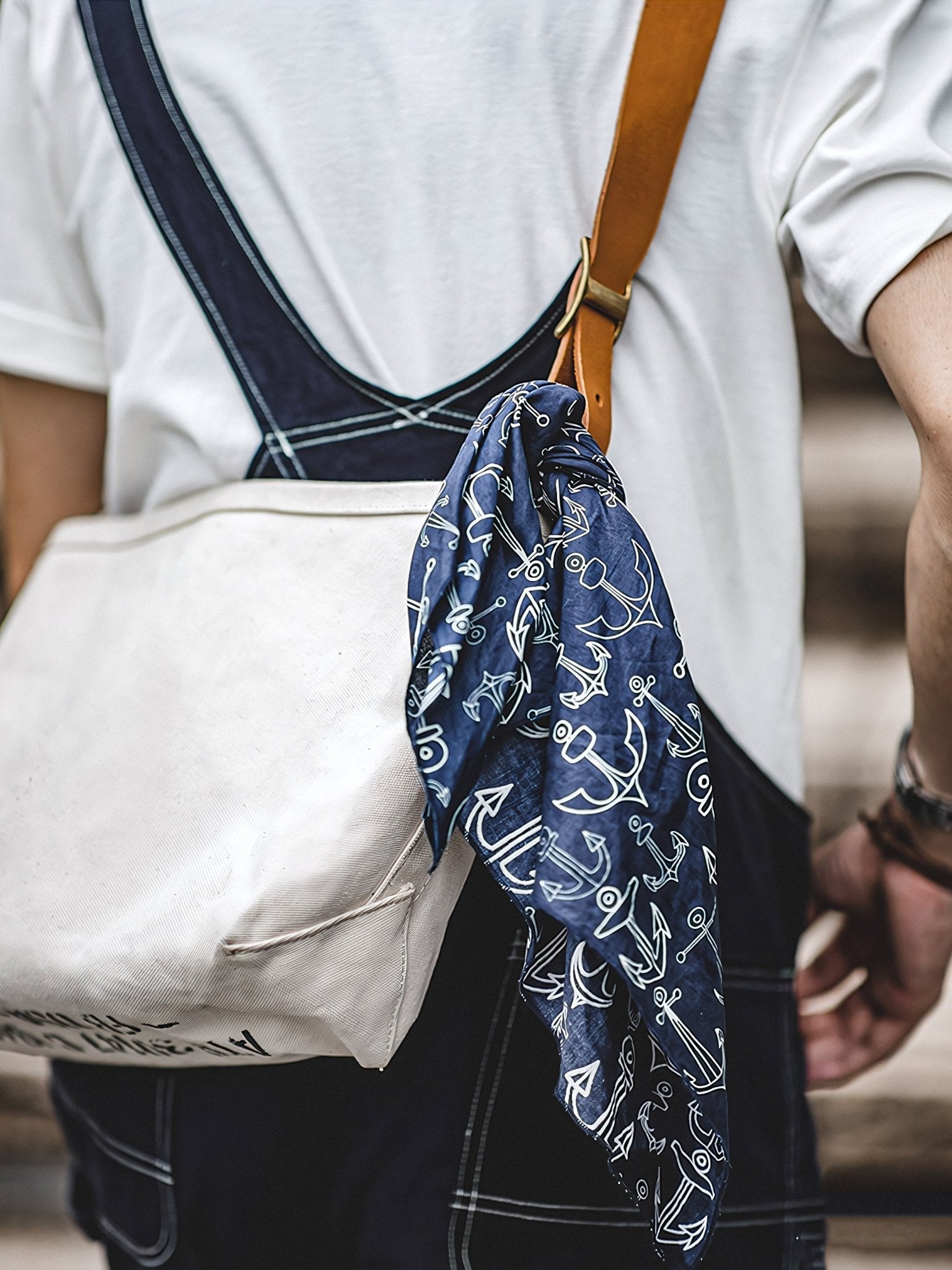 デニムのバックポケットに覗かせ、ハンカチとして使うのが王道ですが、バッグのポイントやスカーフとしてもおすすめです!アイデア次第で様々な使い方ができます。