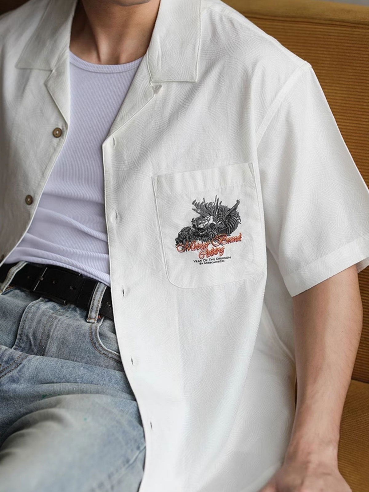 この半袖シャツはキューバンスタイルを基本に、東洋の竜が象徴する伝統とスカルの要素を融合させています。この組み合わせが独特のロックで反逆的な雰囲気を生み出し、東西の文化が融合したユニークなスタイルを展開しています。