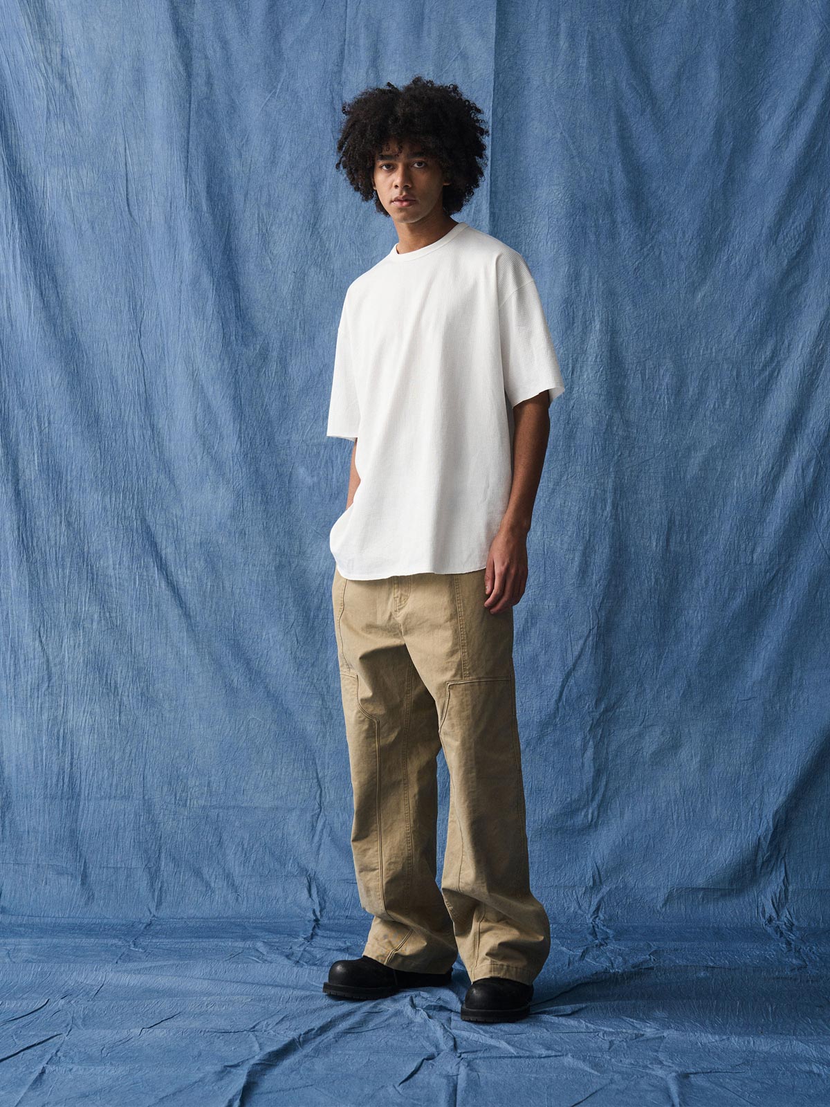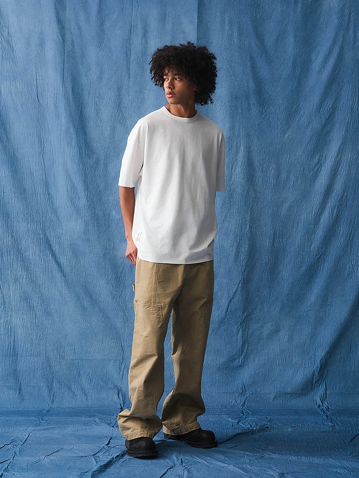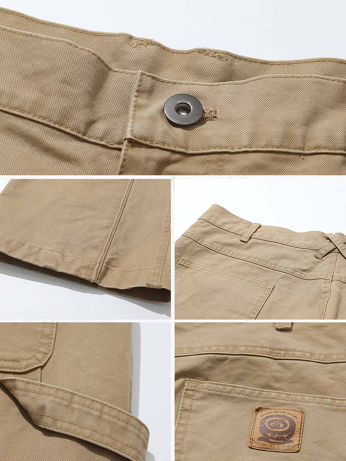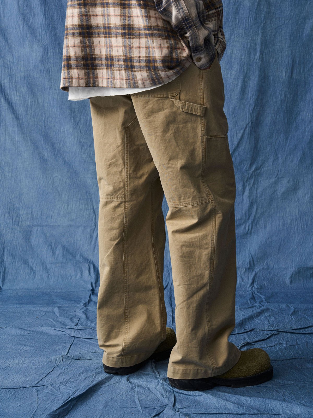 ロガーパンツは労働者の服装から派生し、特に木こりのために設計され、荒れた屋外作業環境での追加の耐摩耗性と保護を提供する目的がありました。このダブルニーストレートカットのロガーパンツは、元のワークパンツの実用性と耐久性を保持しながら、現代的なデザインの調整を行い、日常着に適したものにしています。