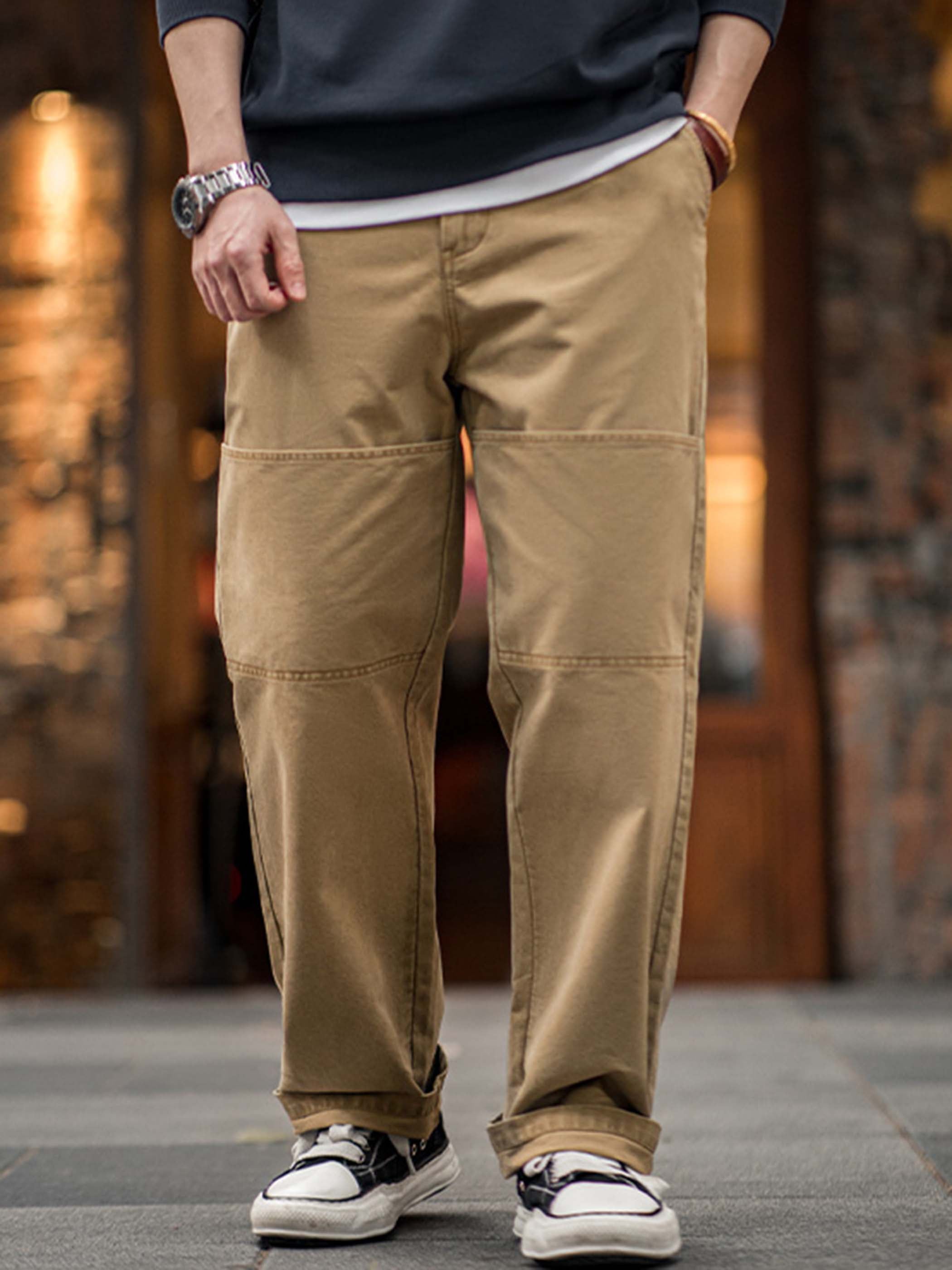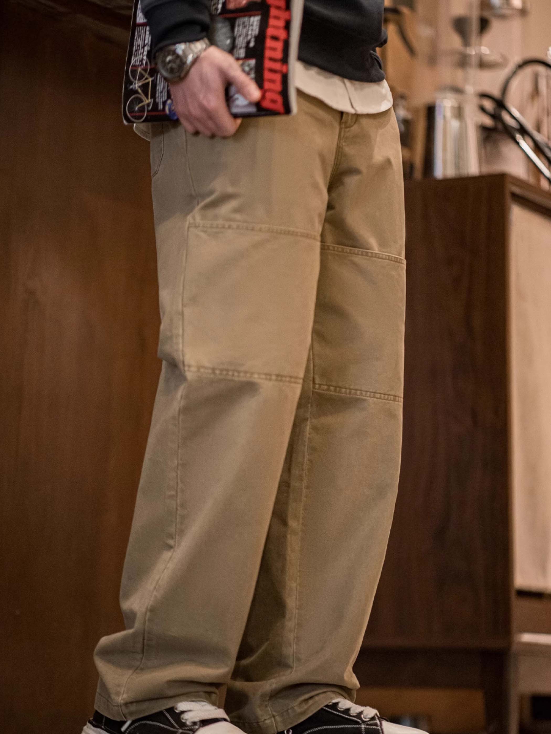 伐木工パンツは、その耐久性と実用性から、ヴィンテージワークウェアの定番として愛され続けています。本製品は、伝統的なダブルニー構造をベースに、大型パッチポケットを追加し、機能性と収納力を強化。クラシックなワークパンツの無骨な魅力を引き立てつつ、実用的なディテールをプラスしました。