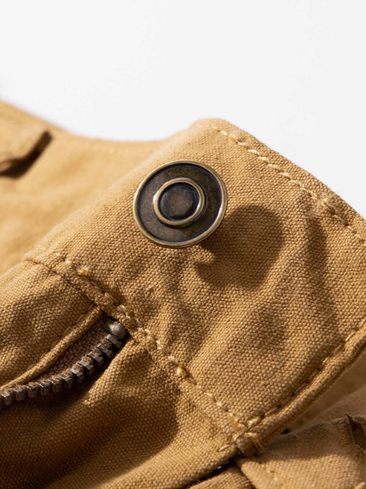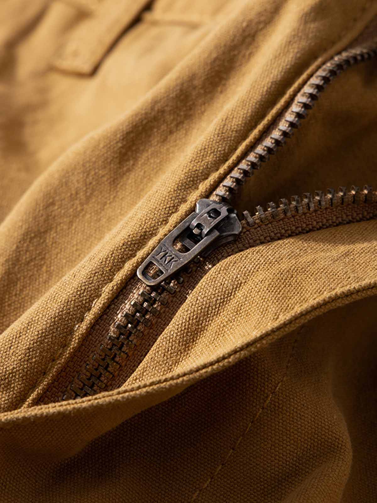 本パンツは、アメリカ鉄道作業員の歴史的遺産に着想を得て、100%綿の頑丈なキャンバス生地を使用し、耐摩耗性と耐久性を実現。多機能ポケットやツール用ハンガーが搭載され、アウトドア登攀や鉄道整備時の収納ニーズに応えます。前面の補強加工と上部の追加ポケットにより、日常や作業時の収納力を強化し、柳釘による加固で全体に硬派な印象を与えます。YKKジッパーとアルミ合金金具がスムーズな動作と堅牢性を保証し、男女兼用の標準シルエットで、シンプルなTシャツやワークジャケットとの相性も抜群。自由でラフなアメリカンヴィンテージアウトドアスタイルを手軽に楽しめる一着です。