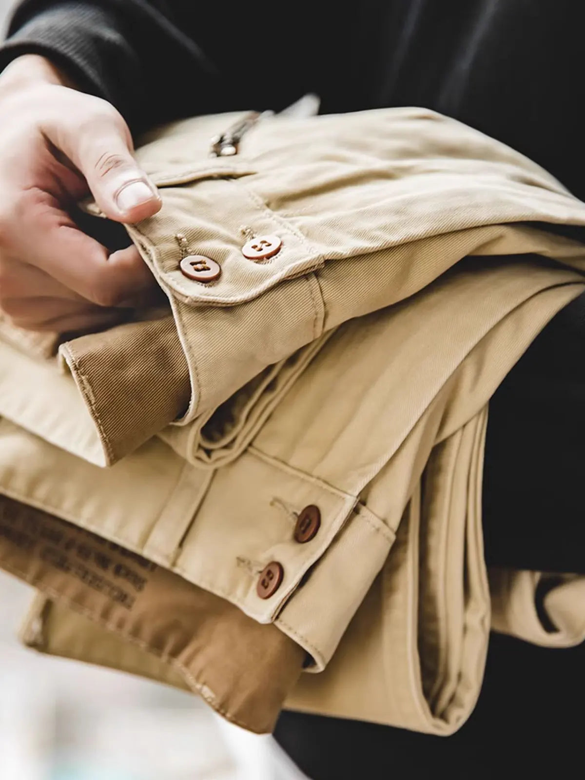 コットン100%のしっかりとしたツイル生地は、耐久性が高く、洗いをかけるほどに柔らかく馴染むため、永く愛用できる一着です。