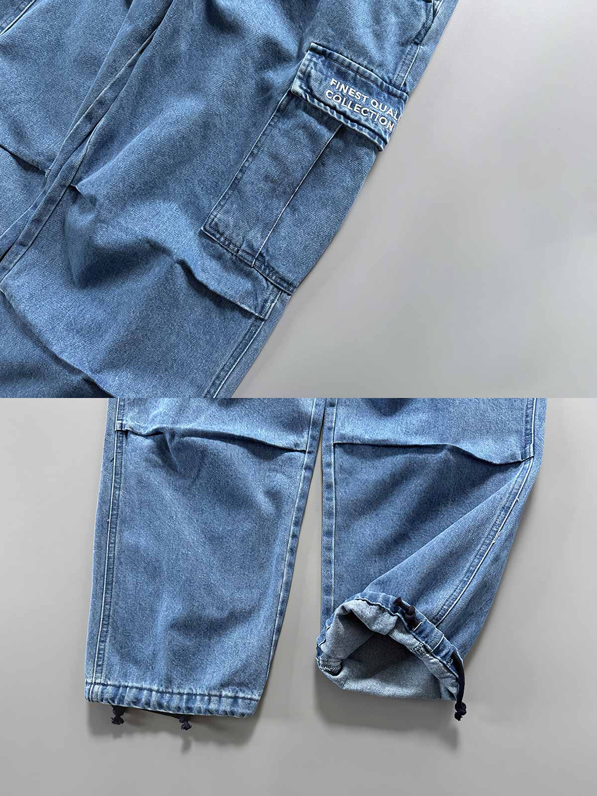 このワークデニムパンツは、100%コットン生地を使用し、柔らかな質感と耐摩耗性を兼ね備えています。ウォッシュ加工により自然なレトロなエイジング感を表現。多機能ポケットデザインは収納性を高め、パンツのディテールに豊かな層次感を加えています。ウエスト部分はゴム、ドローストリング、編み込みベルトの3-in-1デザインを融合し、さまざまなウエストサイズに対応。実用性を向上させるとともに、ワークスタイルのディテールを強調します。フロントジッパーには高品質のYKK防滑ジッパーを採用し、耐久性とスムーズな操作感を保証。前後ポケットにはボタン留めが施され、安全かつ簡単に開閉できます。ルーズフィットのワイドレッグシルエットは快適さを提供し、リラックスしたレトロなワークスタイルを演出。日常のカジュアルからアウトドアまで、あらゆるシーンで理想的な一着です。