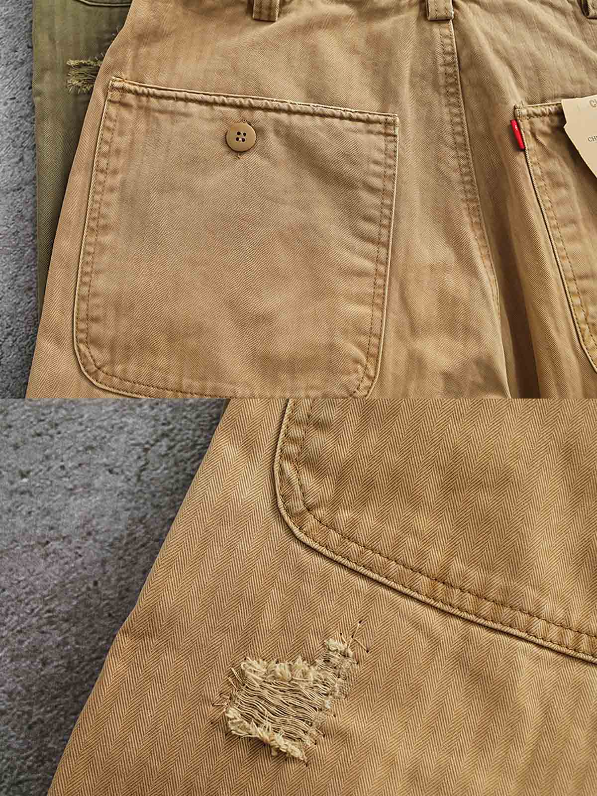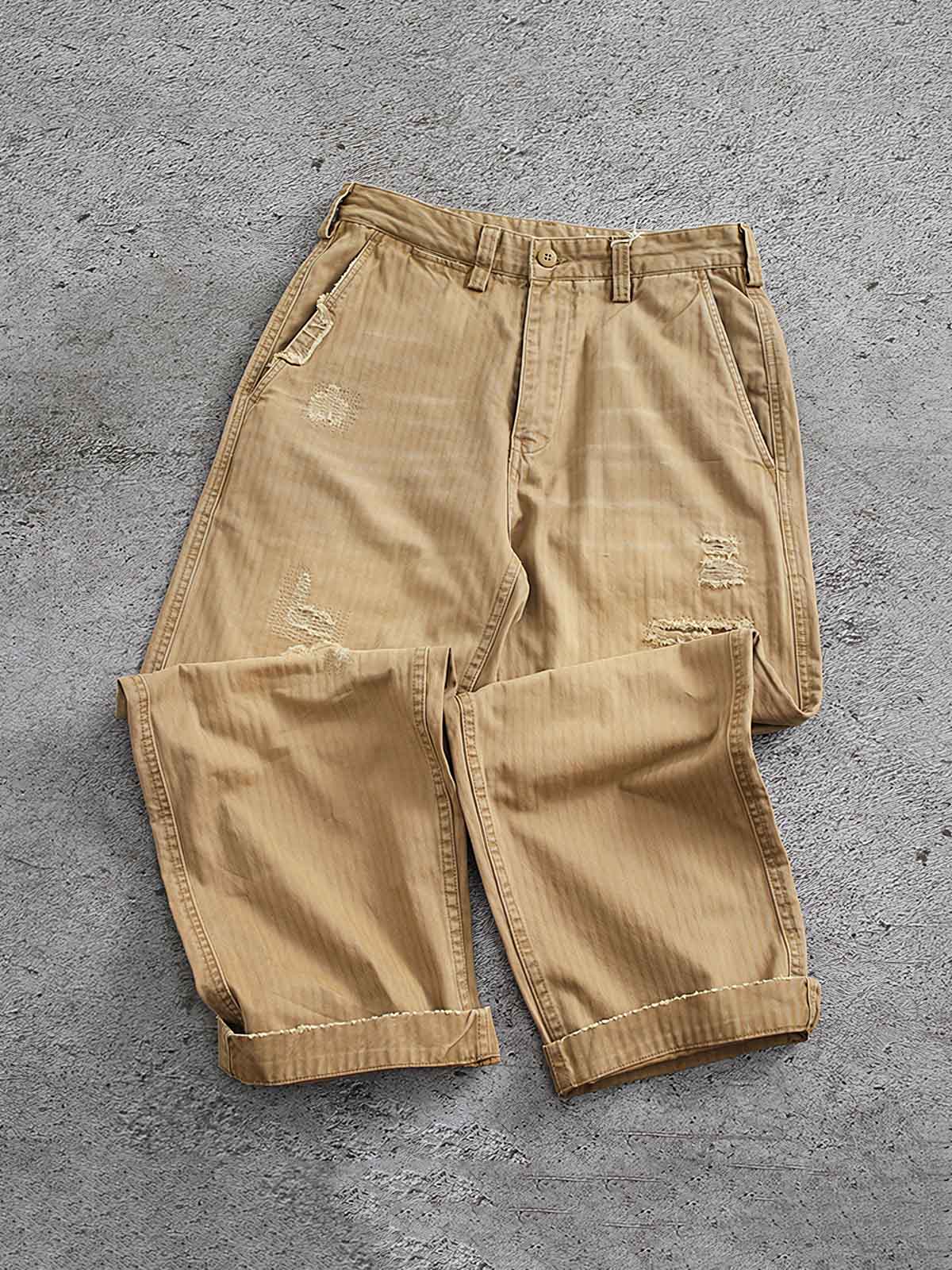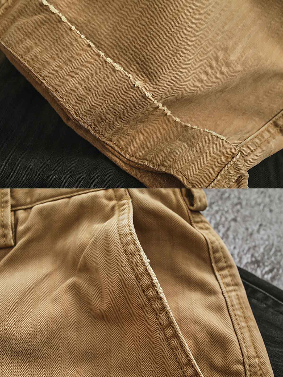 耐久性の高い生地に精巧なパッチワークを施し、独特の視覚効果と触感を実現しました。各パッチはカーゴパンツの特徴を際立たせ、熟練の技と洗練されたスタイルが見事に融合しています。