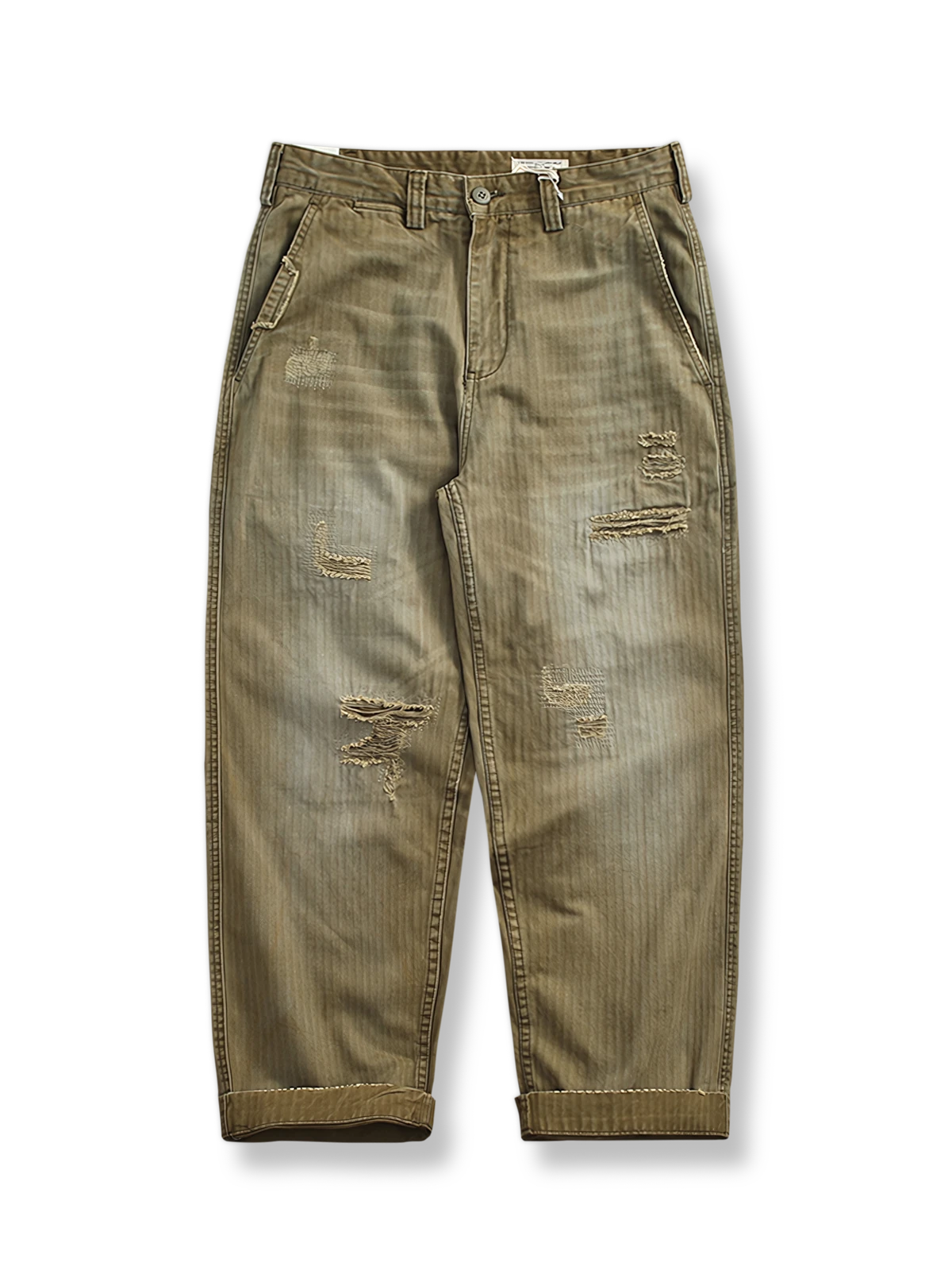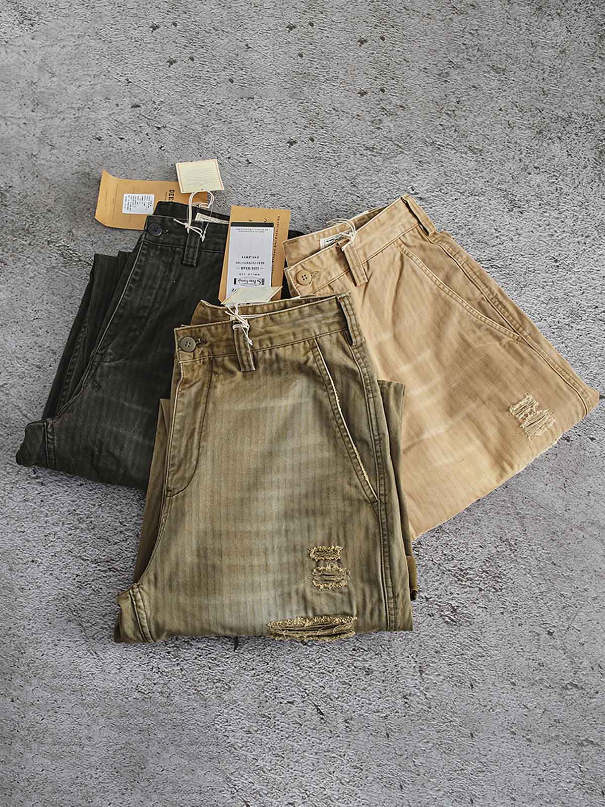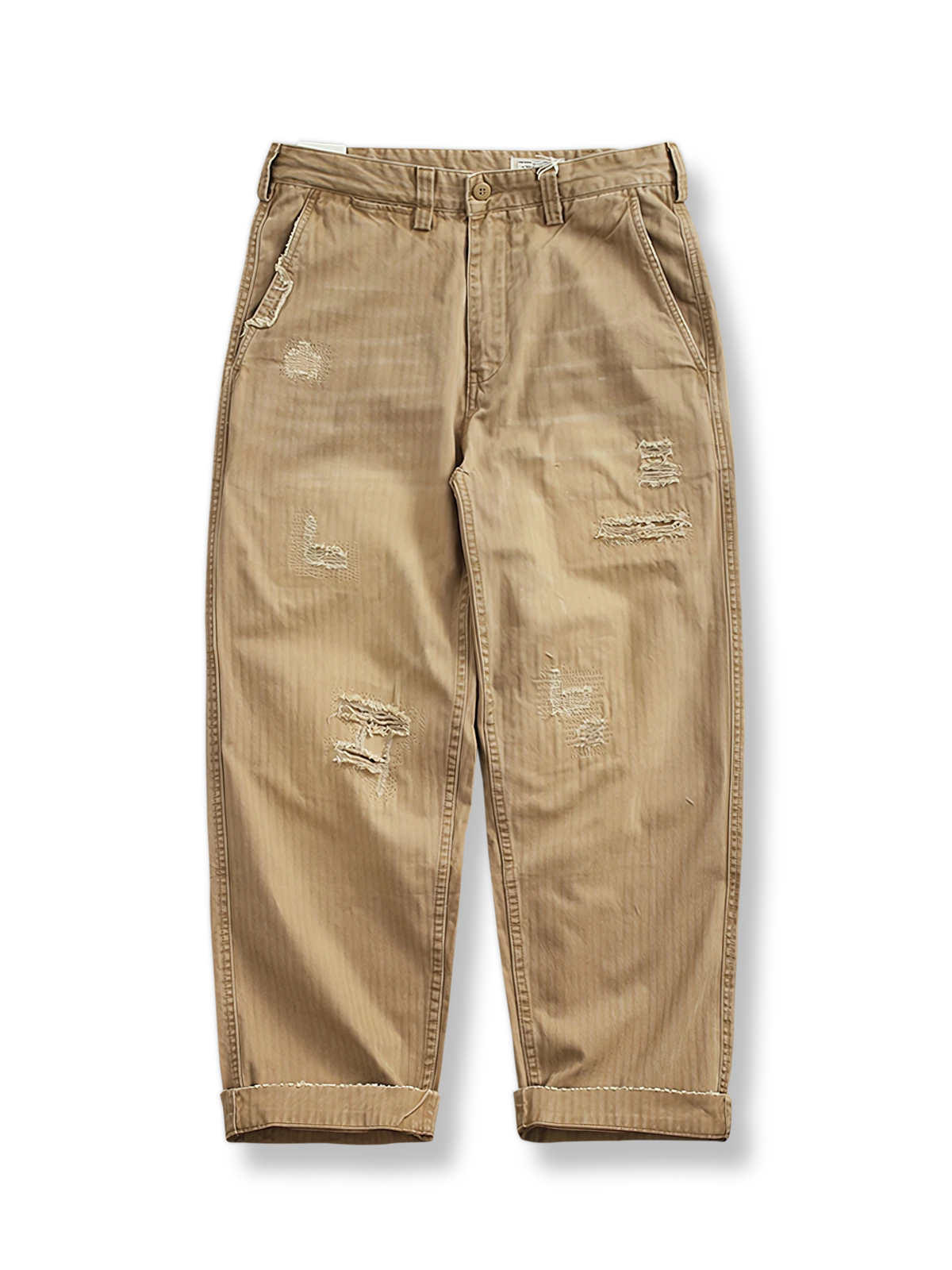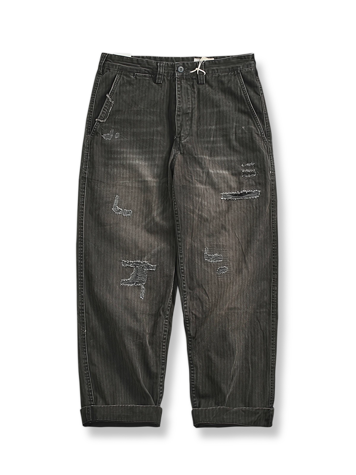 耐久性の高い生地に精巧なパッチワークを施し、独特の視覚効果と触感を実現しました。各パッチはカーゴパンツの特徴を際立たせ、熟練の技と洗練されたスタイルが見事に融合しています。