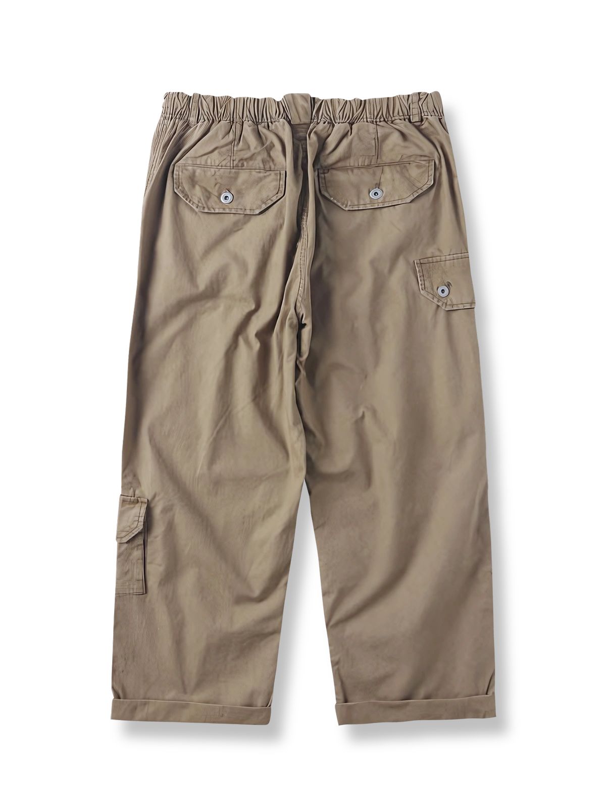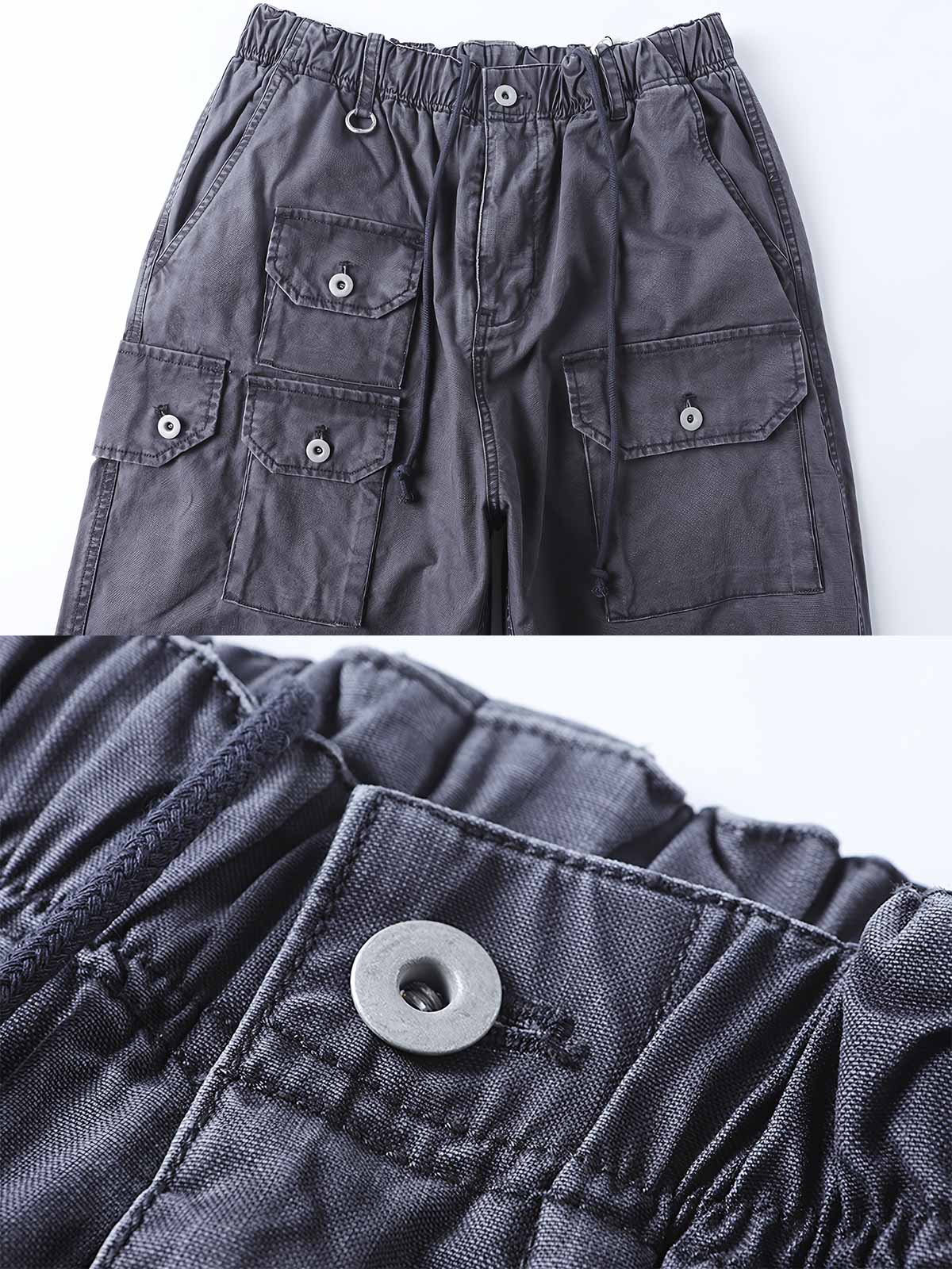 ヴィンテージ感漂うワークスタイルのマルチポケット付きカジュアルパンツ。ウォッシュド加工が施され、実用性とデザイン性を兼ね備え、日常やアウトドアに最適。