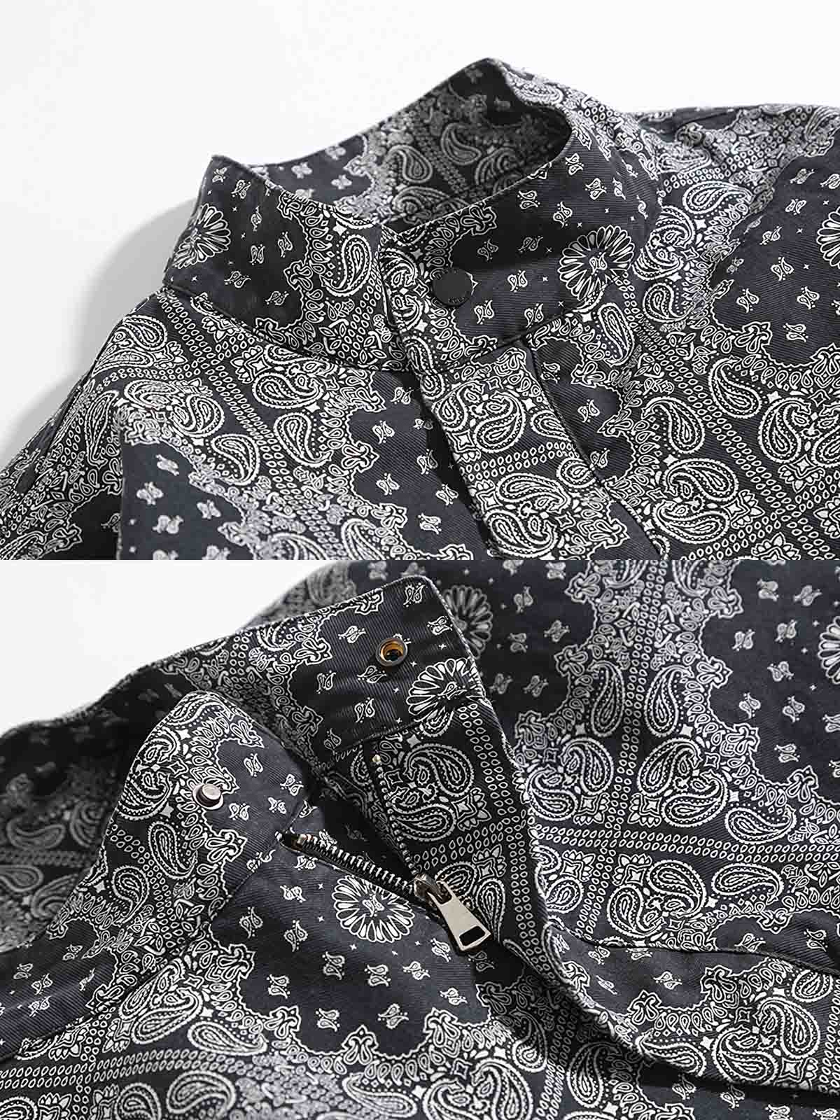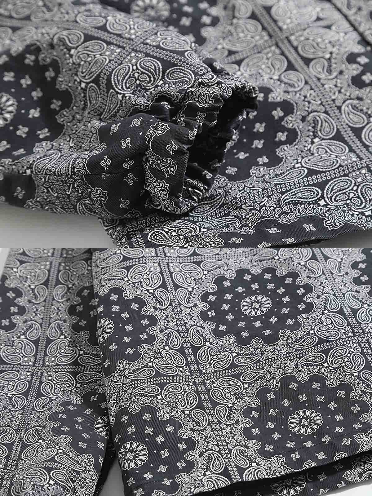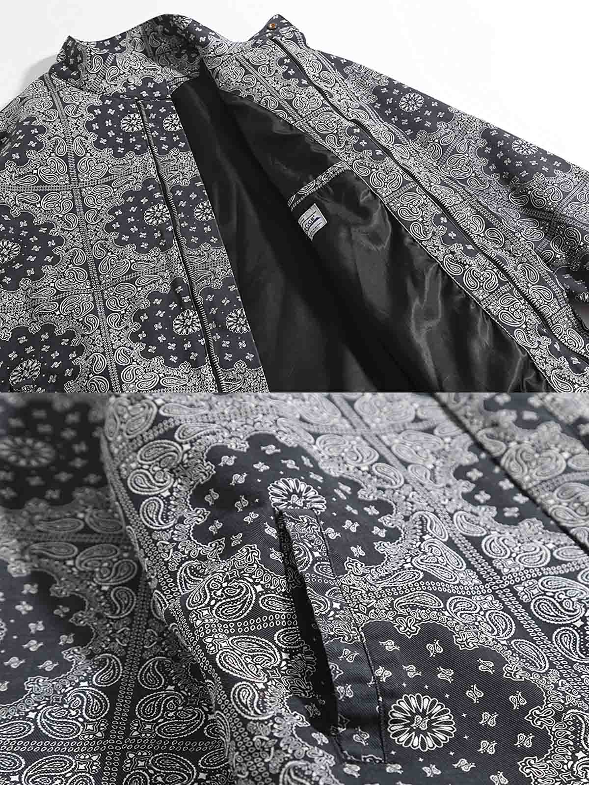 このジャケットは、目立つレタリングペイズリー柄でレトロな雰囲気を演出し、個人のアイデンティティの象徴であり、アメリカ文化の重要な側面を表していました。