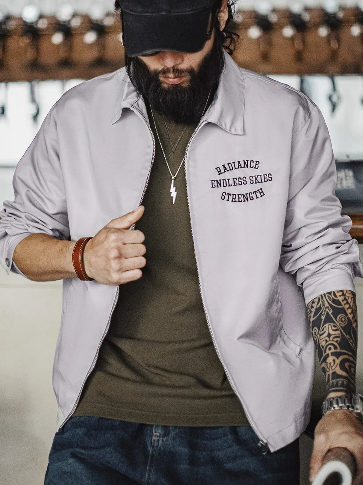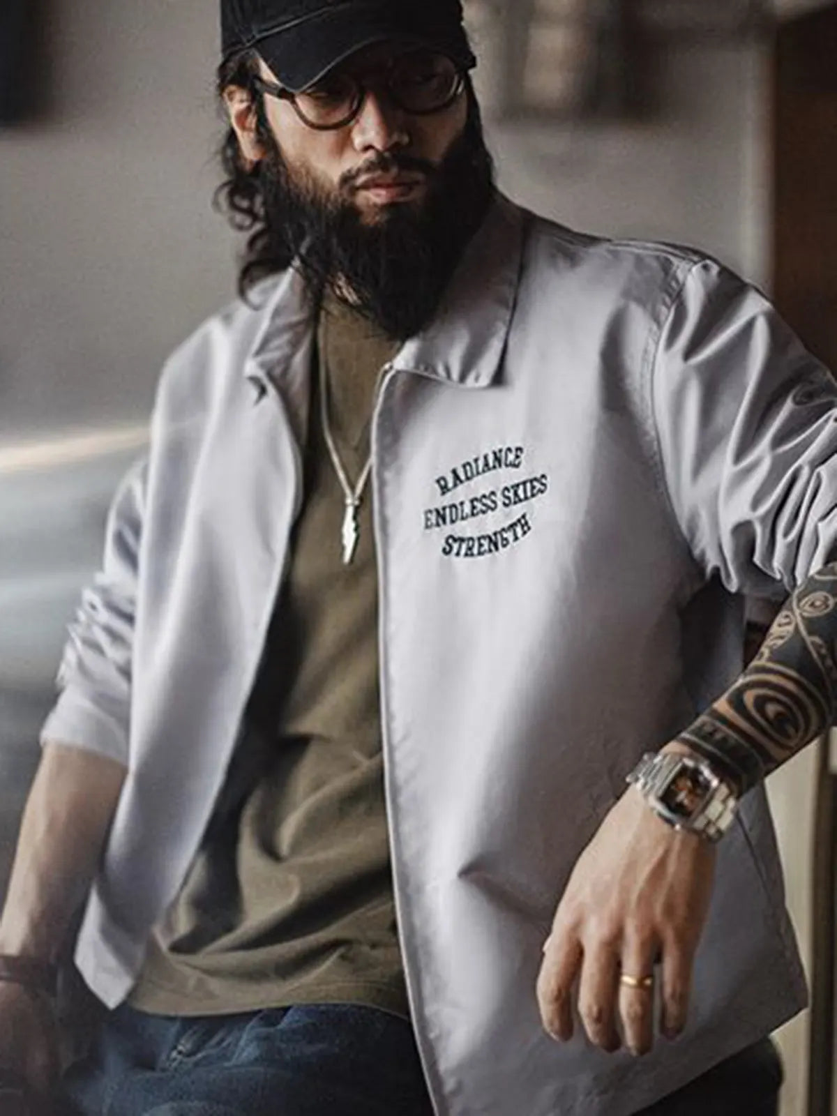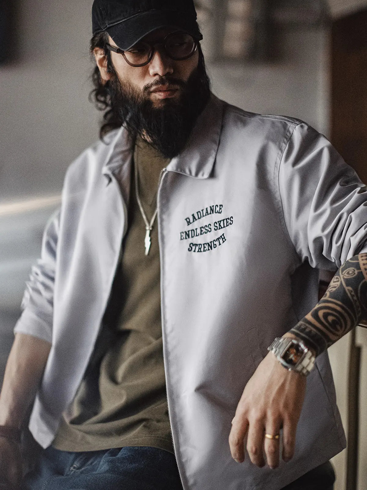 クラシックなデザインと現代的な技術を融合させたこのヴィンテージコーチジャケットは、軽量な生地とユニークなチェーン刺繍によって自由と力強さを表現しています。