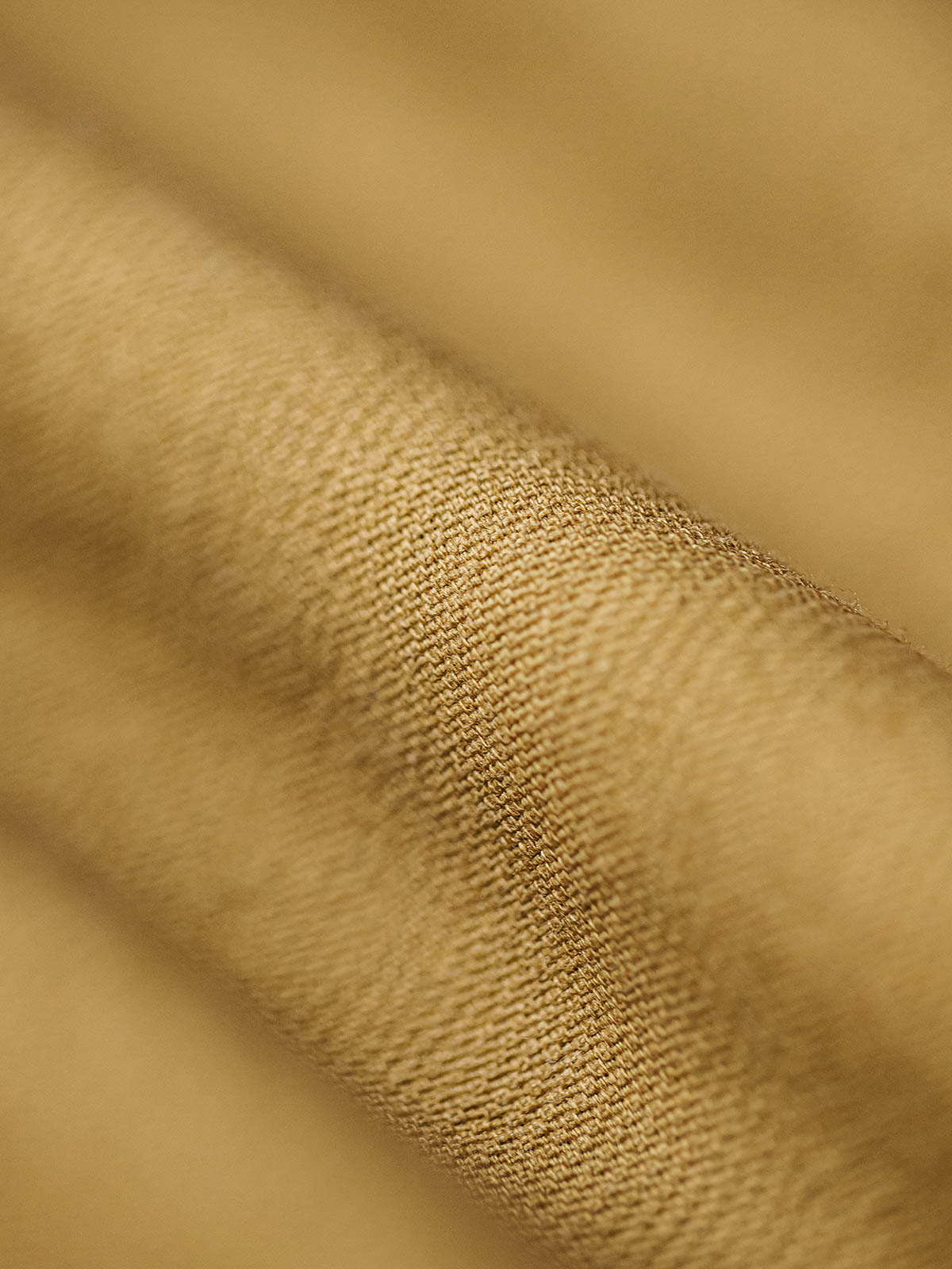 素材は耐摩耗性と持続性に優れた100%コットンキャンバスを使用。特別な加工により、耐久性を保ちつつも、柔らかく快適な着心地を実現しています。
