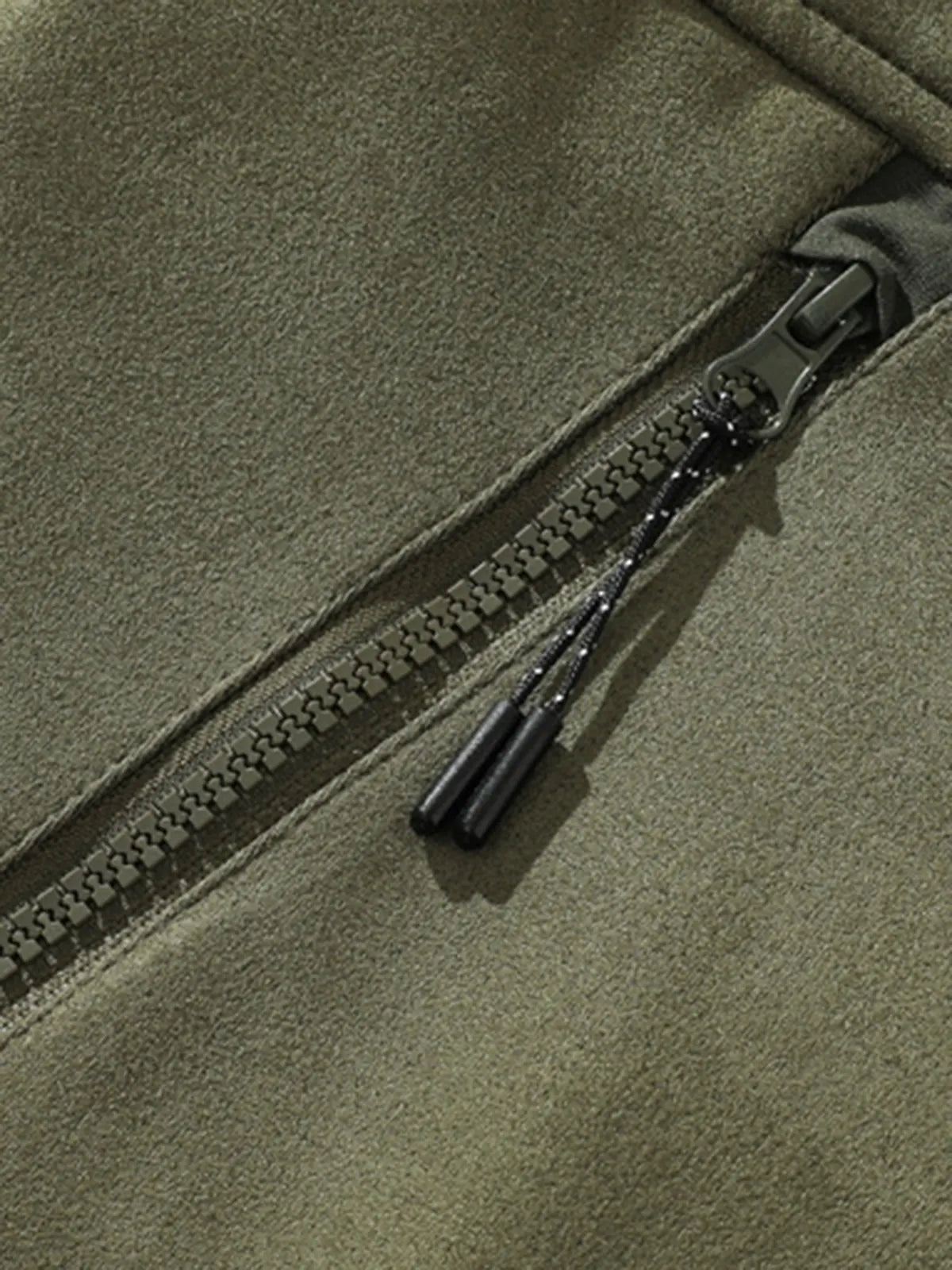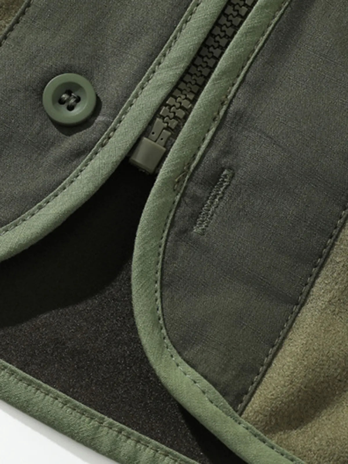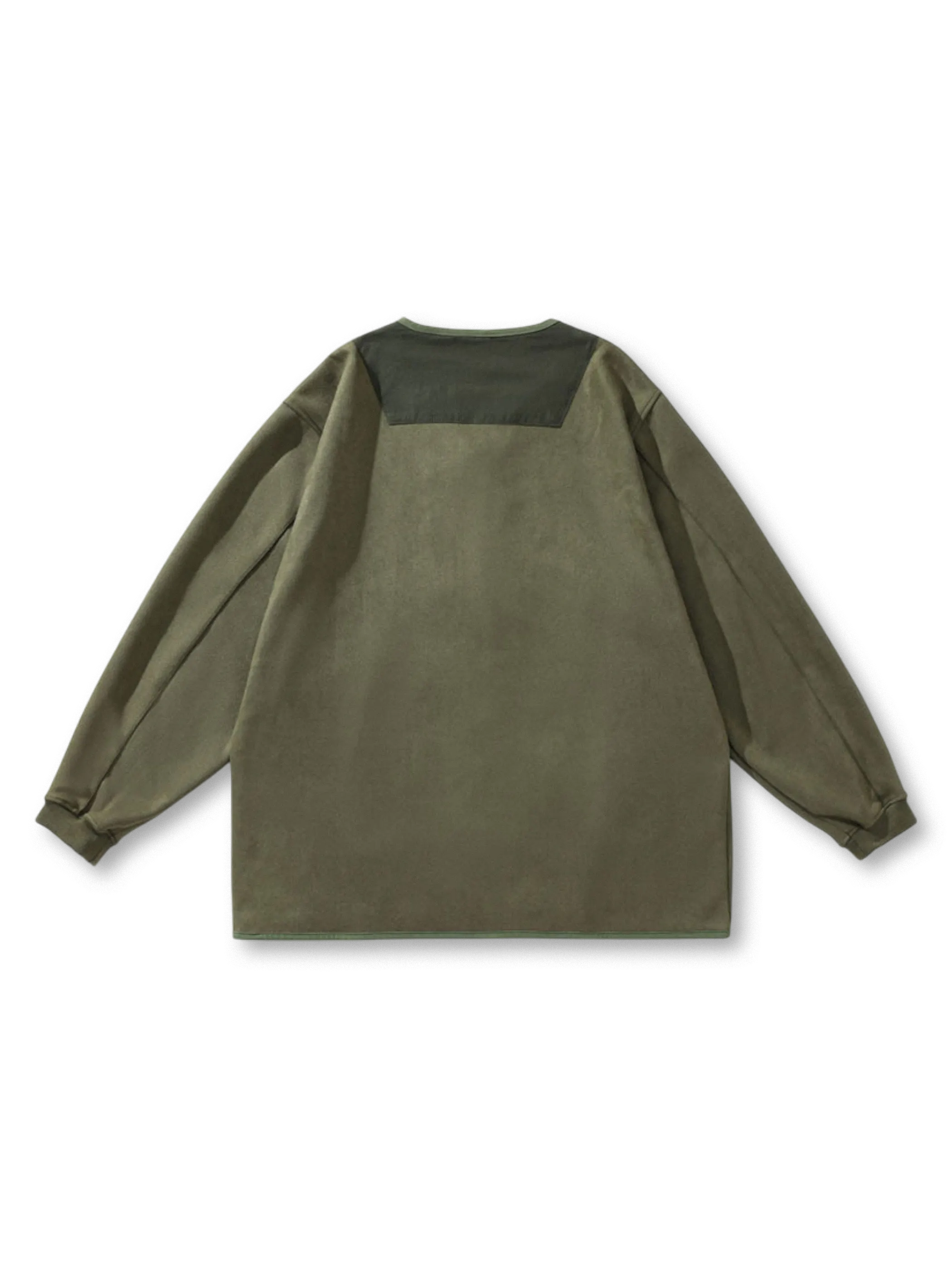 このスエード切り替えワークジャケットは、モダンなワークウェアとレトロなテイストを融合させたデザインが特徴です。メインのポリエステル・ポリウレタン混紡生地は、適度な耐久性とソフトな肌触りを備え、部分的にスエード調素材を組み合わせることで、独特の表情と高級感を演出。Vネックのオープンフロントは着脱がしやすく、ジッパー付きポケットは収納性とデザイン性を同時に高めています。春秋のライトアウターとしてはもちろん、レイヤードスタイルのアクセントとしても活躍。カラーはブルーとグリーンの2色展開で、デニムやチノパンなど幅広いアイテムと合わせやすく、日常からカジュアルなお出かけまで対応可能な万能アウターです。