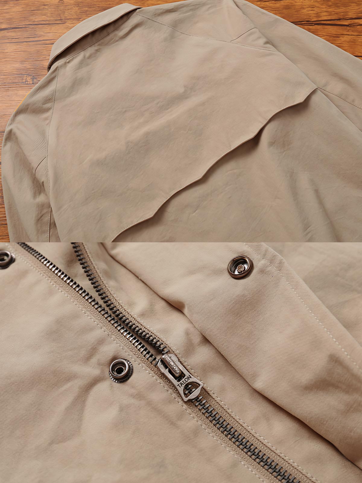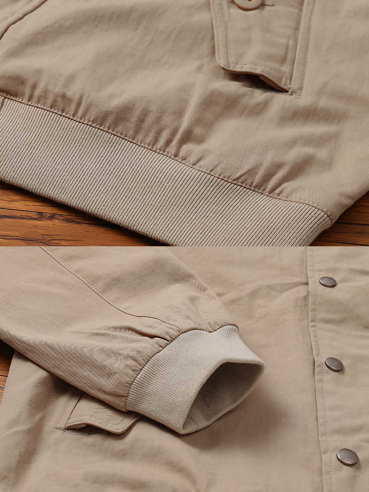 このジャケットは、クラシックなハリントンカットを採用しており、伸縮性のあるウエストバンドとカフスが着用者に追加の快適さと自由度を提供しています。そのデザインは、日常のカジュアルウェアにも、少しフォーマルな場にも適しており、控えめでスタイリッシュな英国レトロスタイルを演出します。