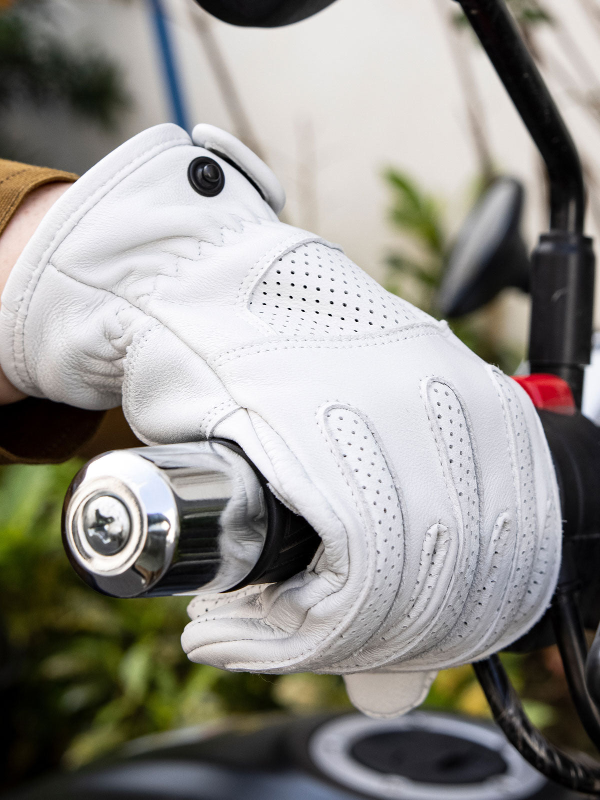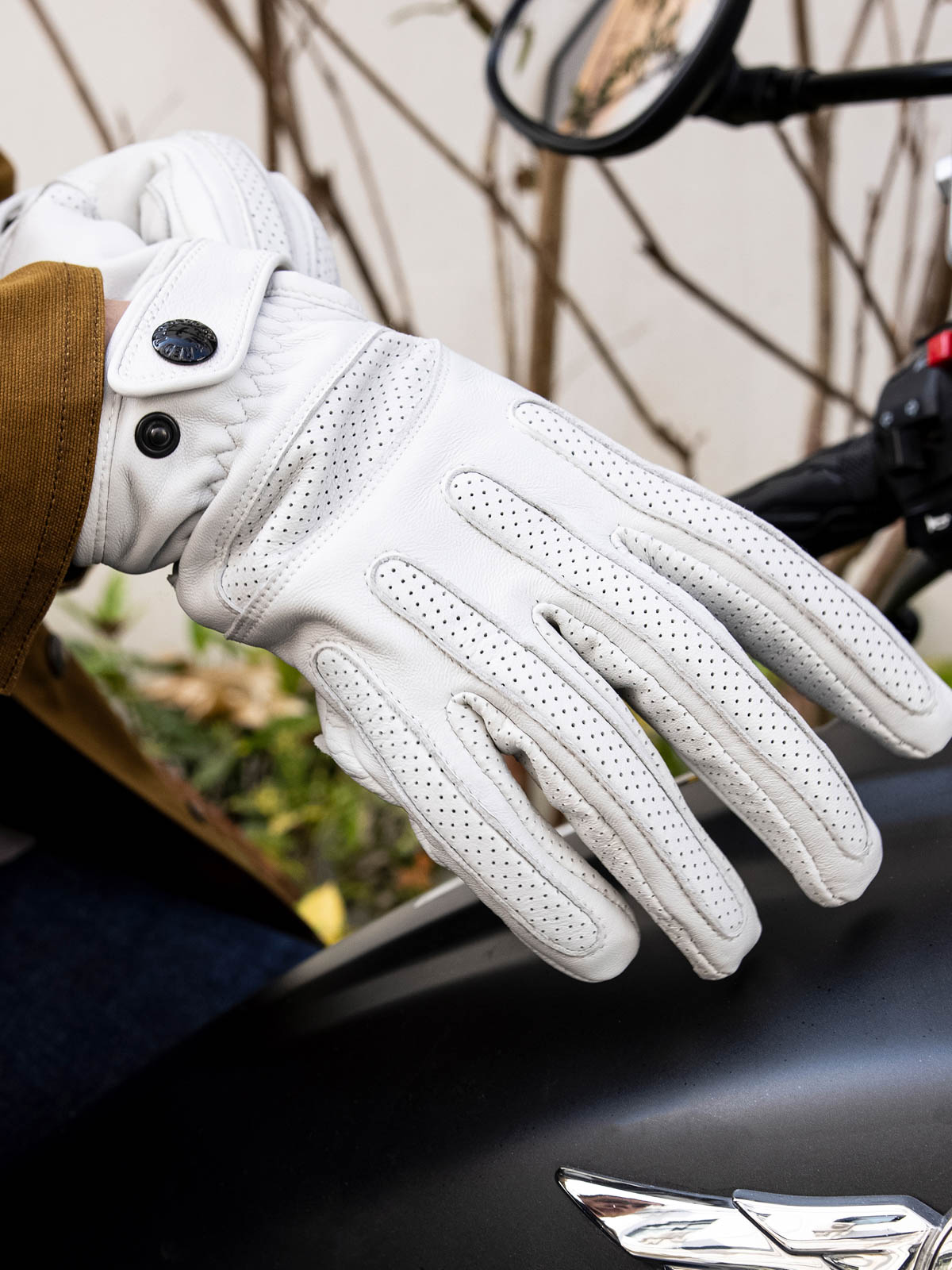 20世紀のモーターサイクル文化に根差したクラシックなバイクライディング手袋のデザインを採用しており、当時のライダーにとっては手を保護するだけでなく、スタイルとトレンドを象徴するアイテムでした。パンチングとバックルのデザインは、通気性と快適性を提供し、レトロなバイク装備の美学を反映しています。