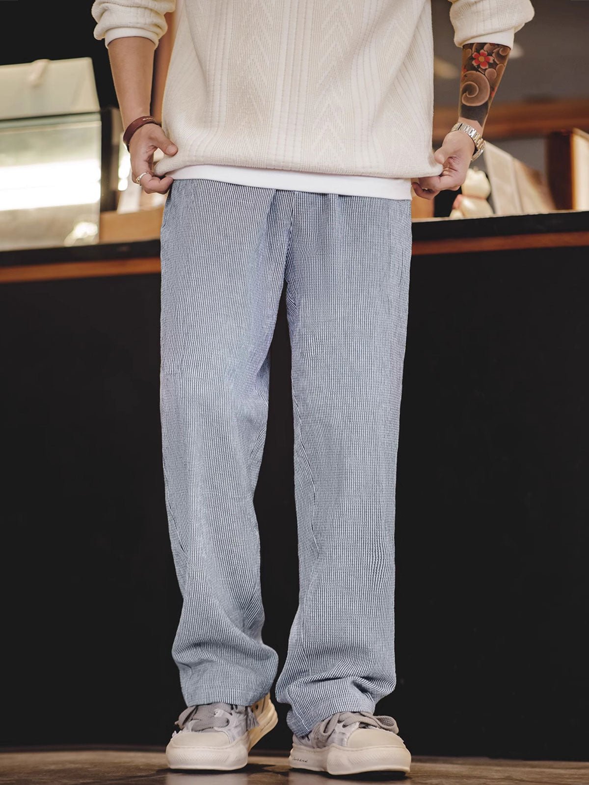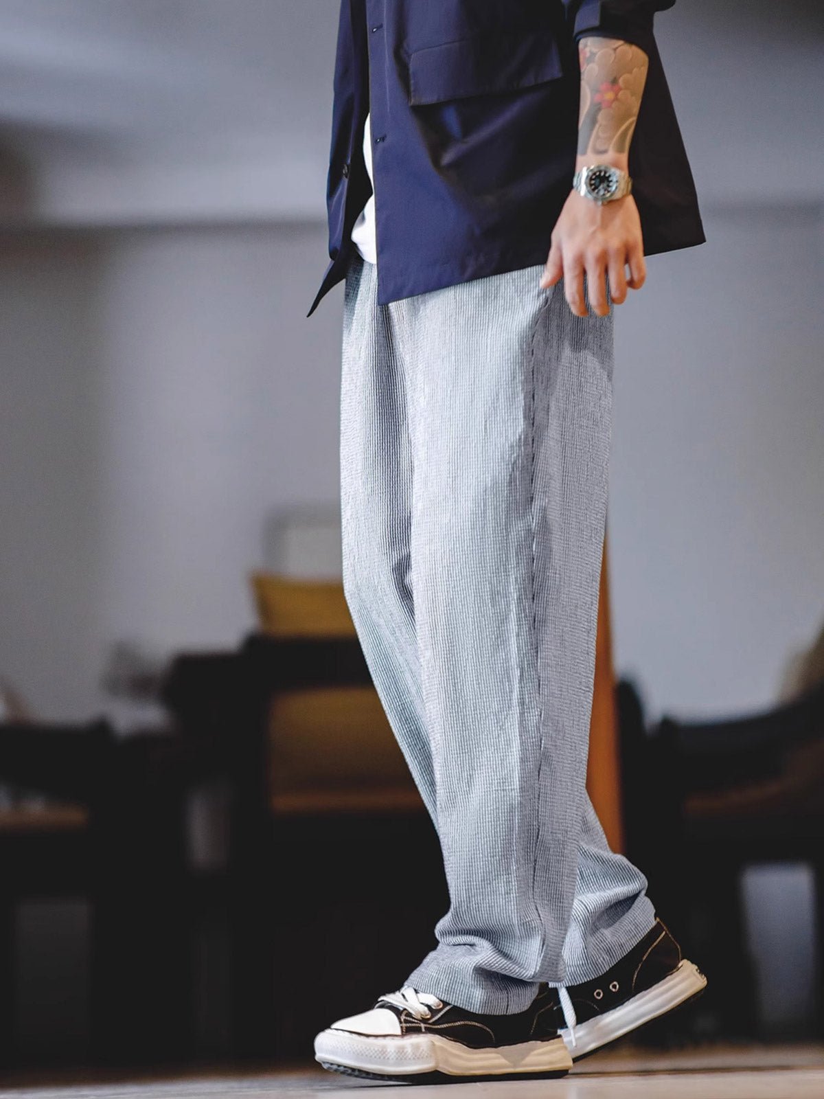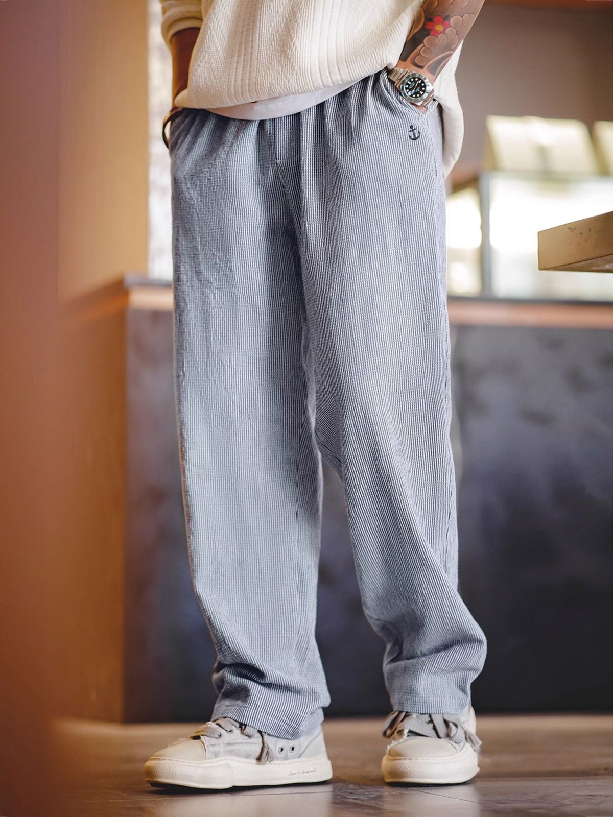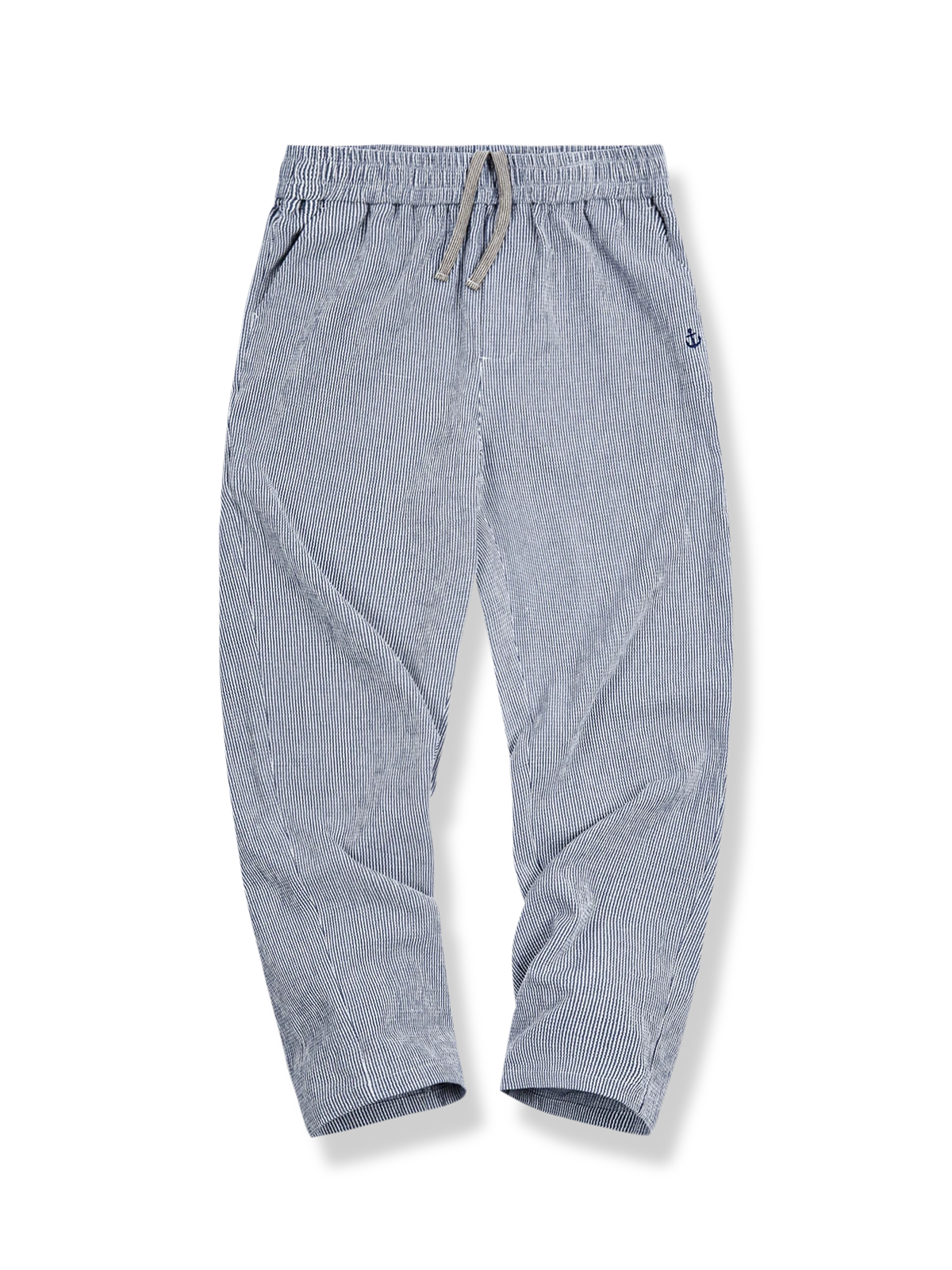 このEasypants ストライプカジュアルパンツは、柔軟性と快適性を追求した現代的なデザインです。グレーブルーのストライプパターンは、視覚的鮮度とクラシックなストライプの現代的再解釈を提供します。このストライプデザインは、秩序とシンプルな美学を象徴し、海軍の制服からインスピレーションを受けています。