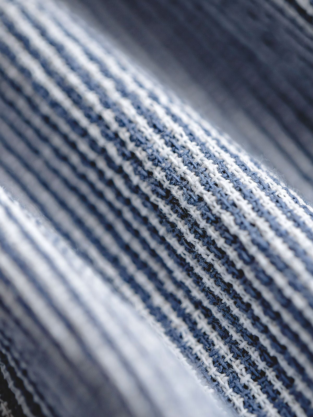 柔らかく通気性に優れたコットン混紡素材を使用し、一年中快適に着用可能です。軽量な生地は日常のお手入れが簡単で、精密なストライプの整列と繊細な縫製は職人技の精神と品質へのこだわりを反映しています。
