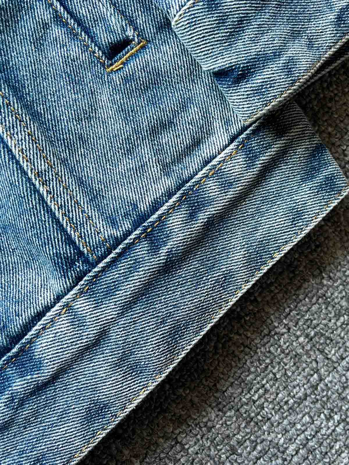 ヴィンテージ感とワークウェアスタイルが融合した、100%コットンの短丈デニムジャケット。