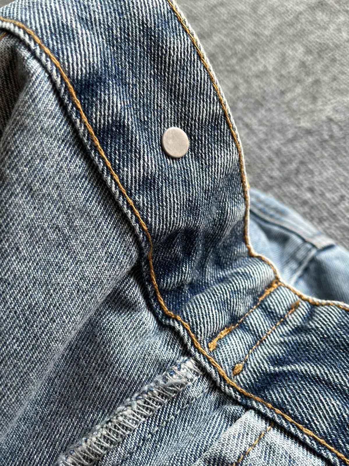 このデニムジャケットは、100%コットンの高品質素材を使用し、水洗加工でヴィンテージ風の風合いを引き出したアイテムです。フロントに設けられた左右対称のフラップポケットが実用性を高め、ハードなワークスタイルを演出。袖口と裾に施されたボタンディテールが、着こなしのアレンジに柔軟性をもたらします。カジュアルな日常着や、軽めのアウターとしてアウトドアシーンにも適しており、クラシックなシルエットとヴィンテージ感が調和した一着です。