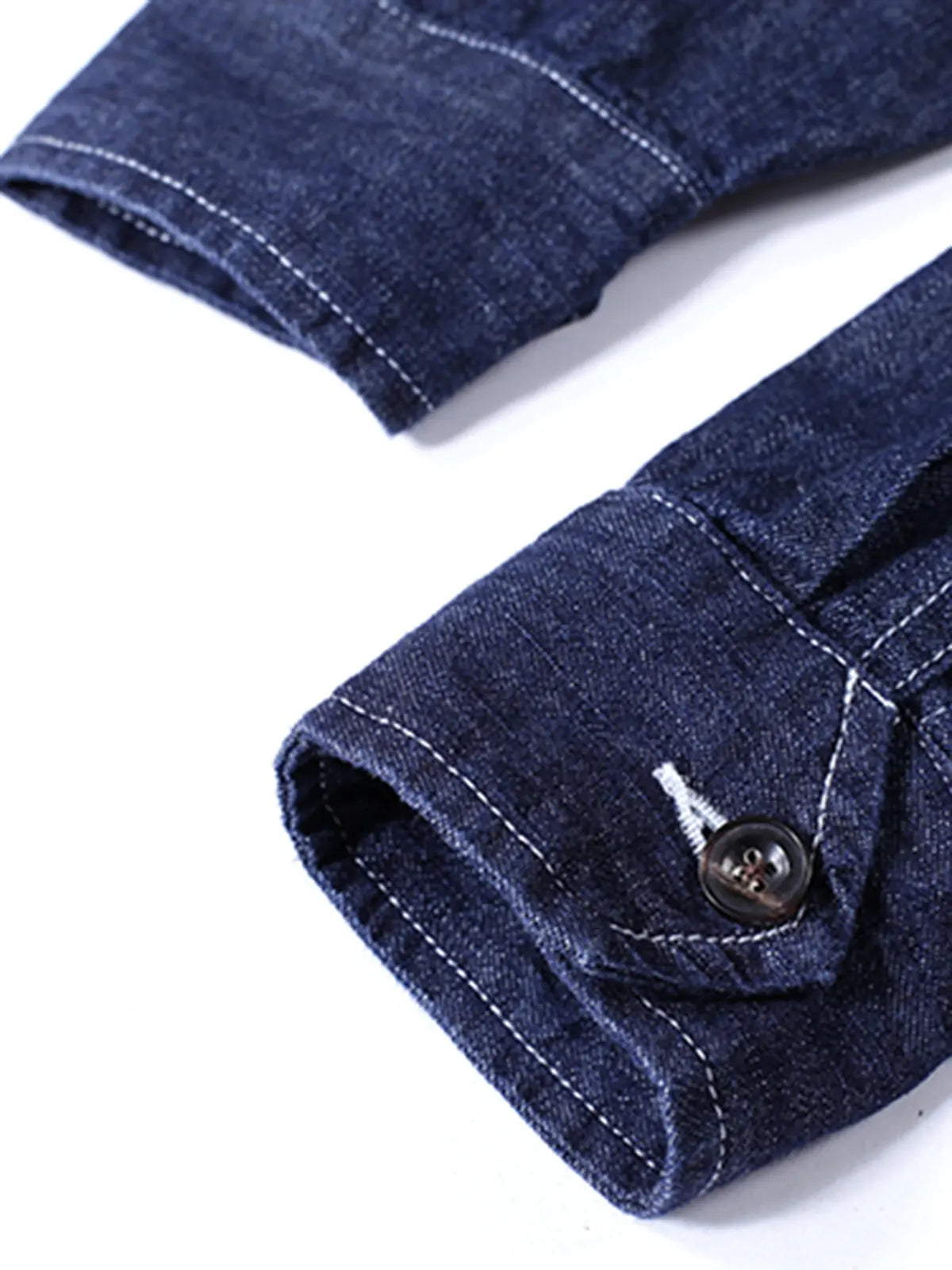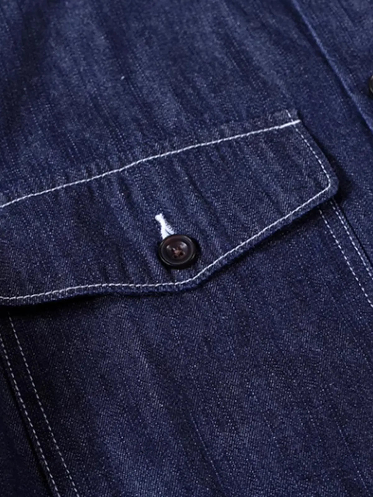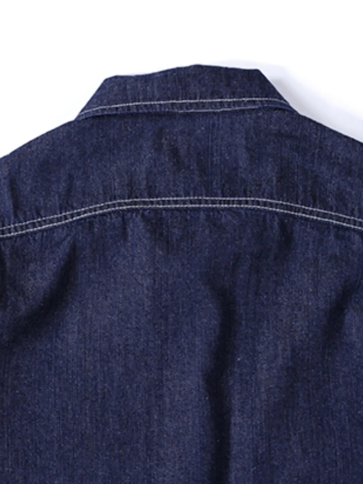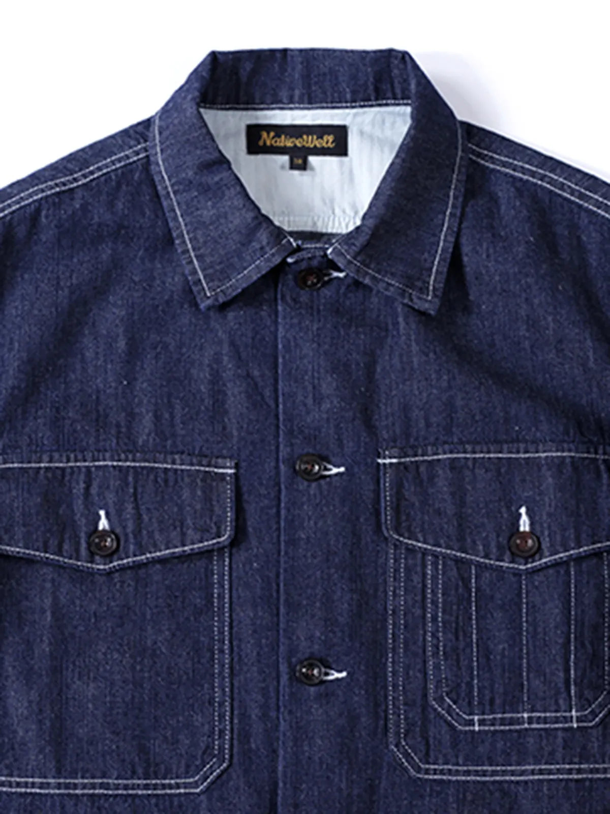 クラシックなヴィンテージワークウェアデニムシャツジャケットで、実用性とファッション性を兼ね備えた一着。