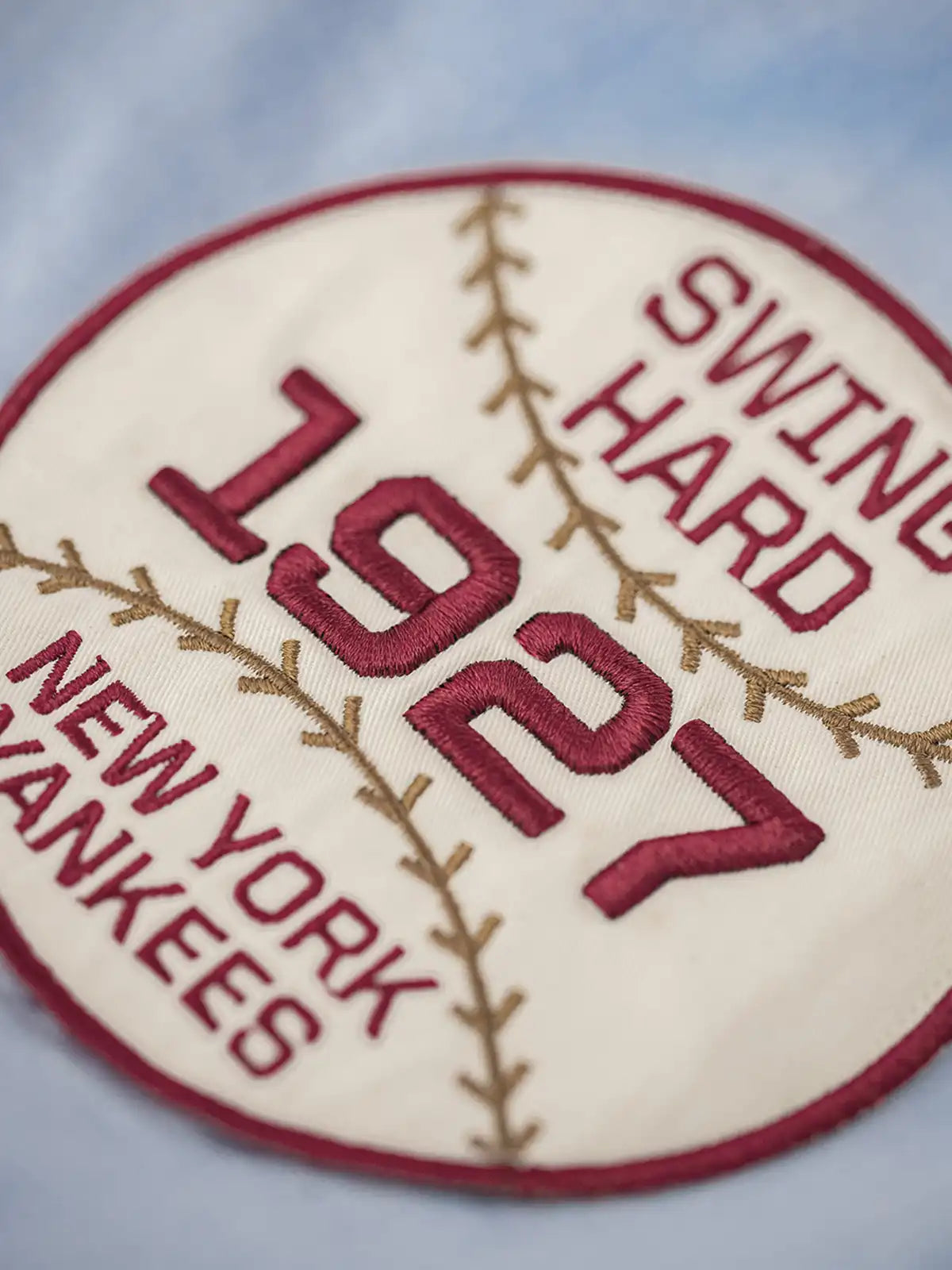 1927年ヤンキース伝説を讃えた、光沢あるサテンに野球モチーフ刺繍を施した硬派なジャケット。