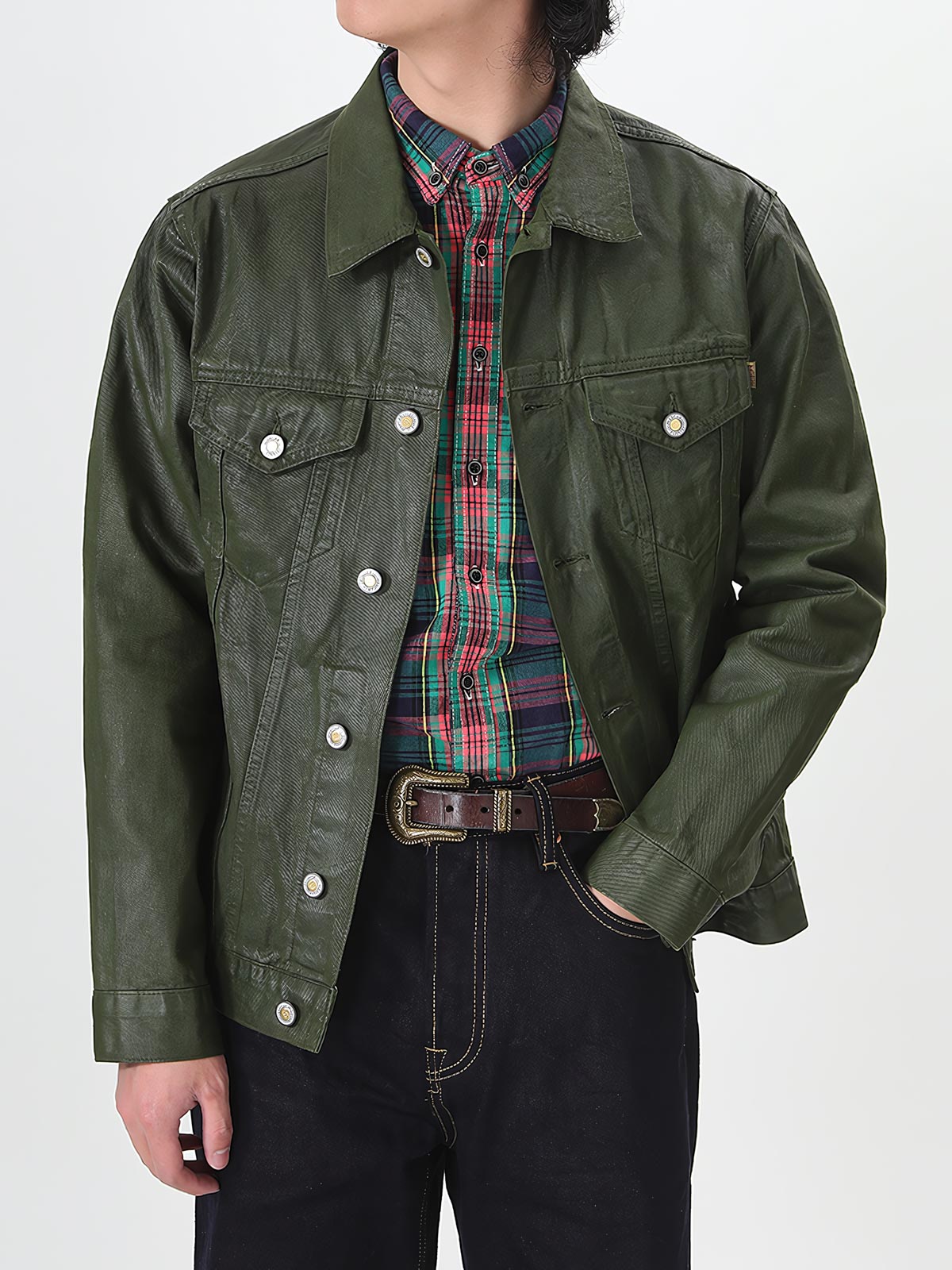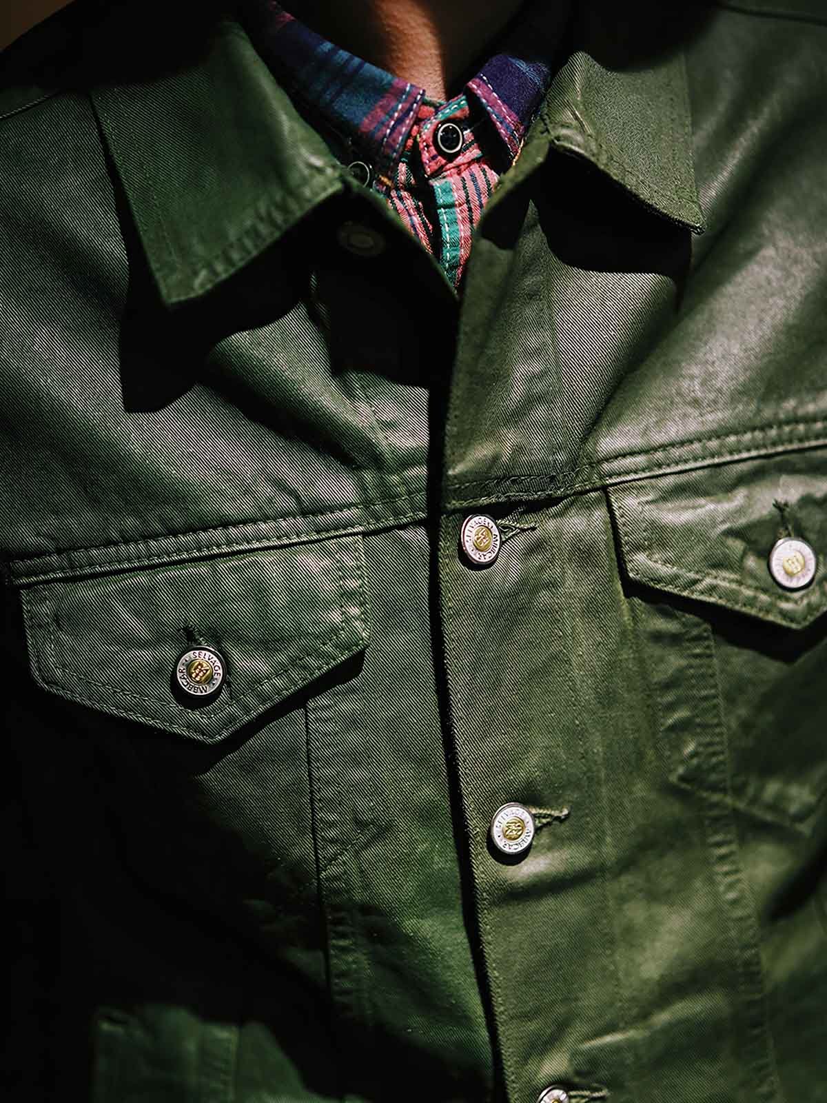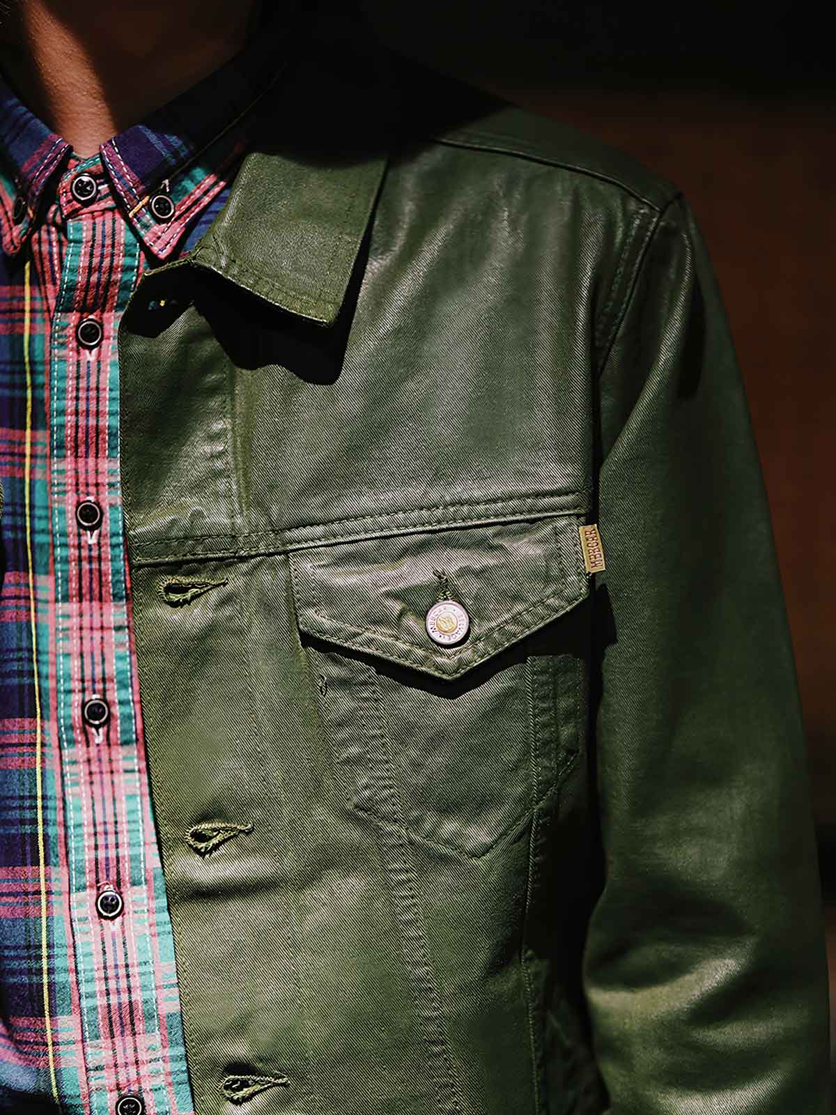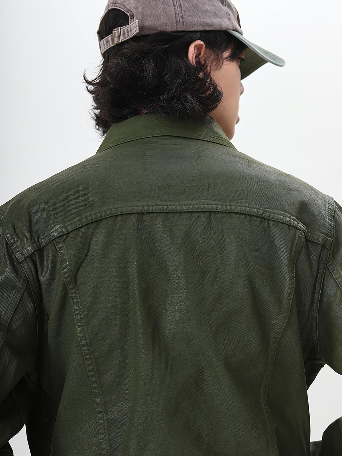 このPUコーティングデニムジャケットは、クラシックなデニムジャケットのデザインを基にしており、PUコーティングの技法により現代的な感覚とユニークな質感を加えています。クラシックなダブルポケットデザインは、デニムジャケットの象徴的な特徴を保持している一方、ユニークなコーティング技術は職人の精神と細部への注意を反映しています。
