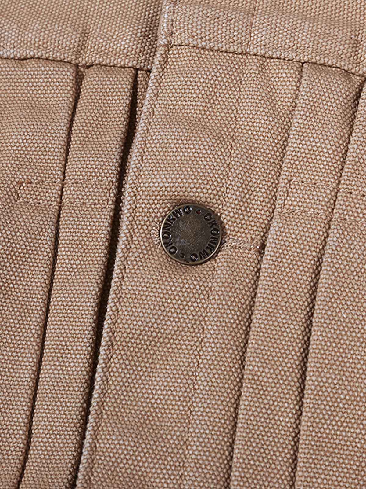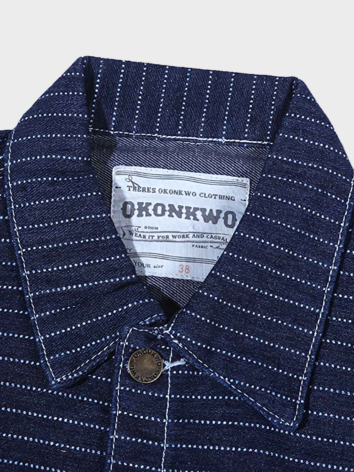 このジャケットは、鉄道作業員の服装から着想を得ており、独特の縦ストライプパターンと多機能ポケットを採用し、実用性とレトロなスタイルを際立たせています。デニム素材で作られており、耐久性と長持ちする特性で知られています。時間の経過と共に、色と質感が独自の個性的な跡を残します。