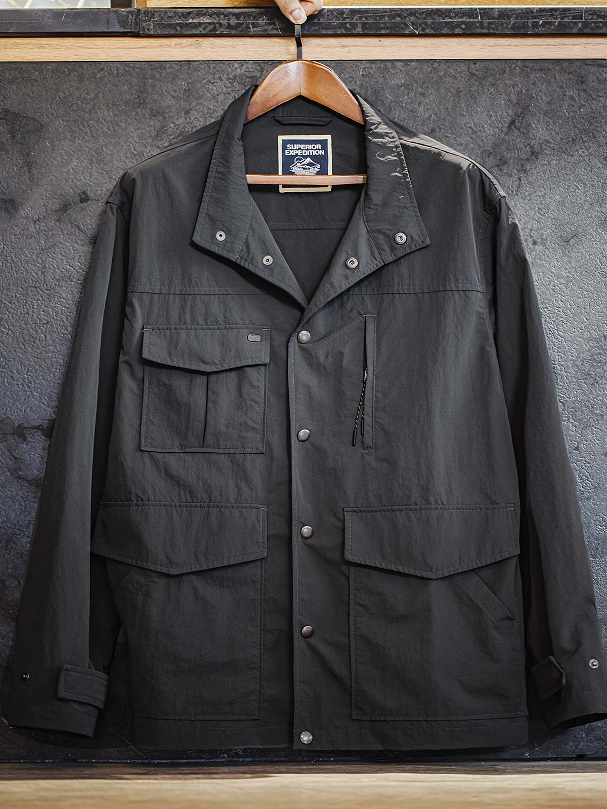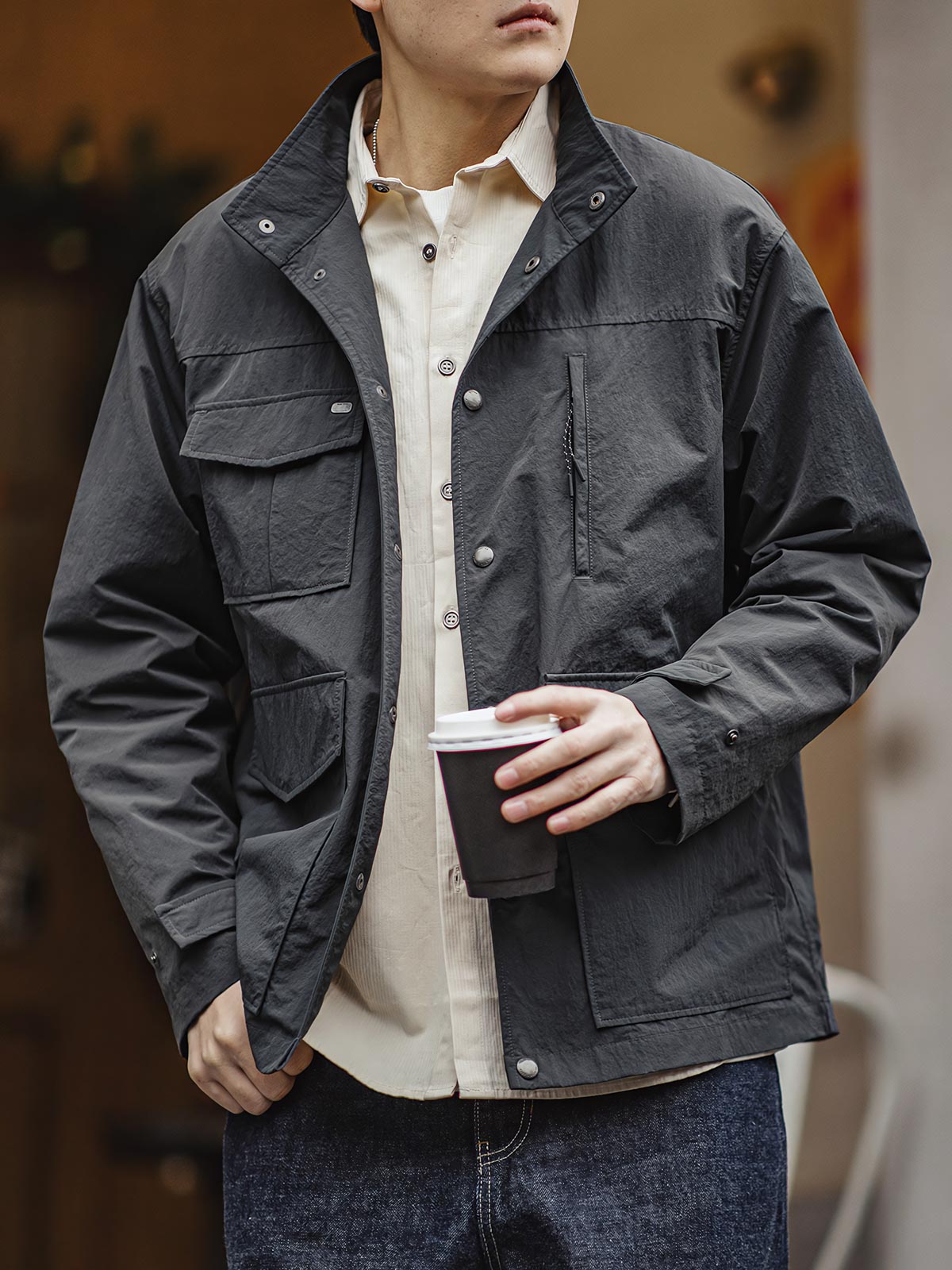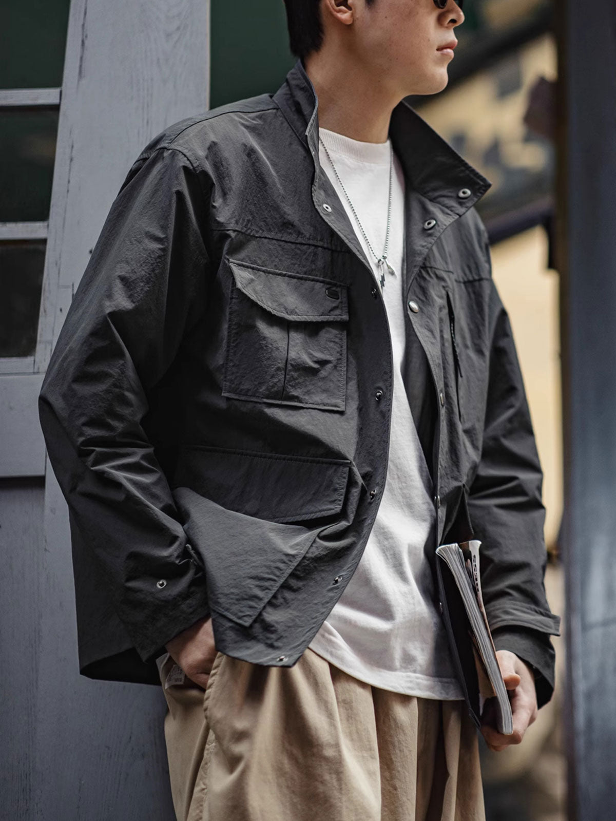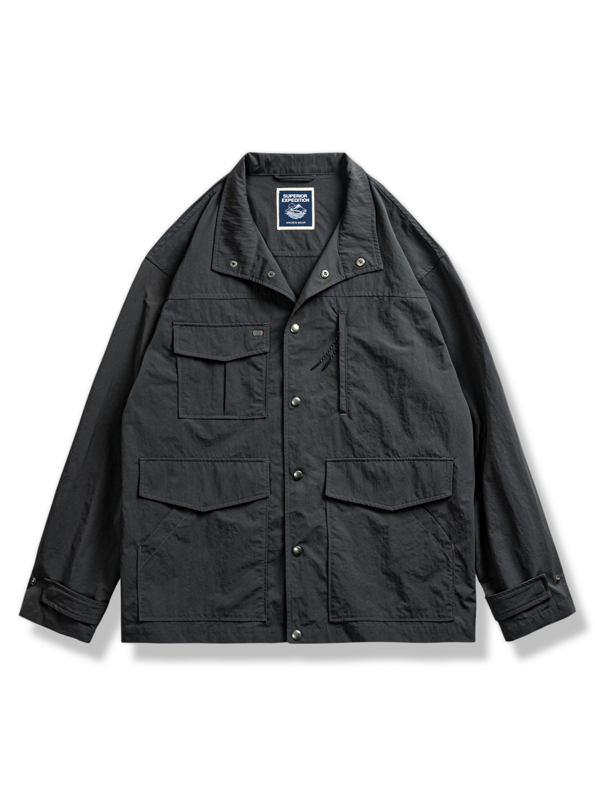 防水性のあるナイロン素材で作られて、軽量かつ耐久性があり、悪天候や湿気のある環境でも快適に着用する。雨や水しぶきから身体を保護し、衣服の内部を乾燥させることで快適さを確保。
