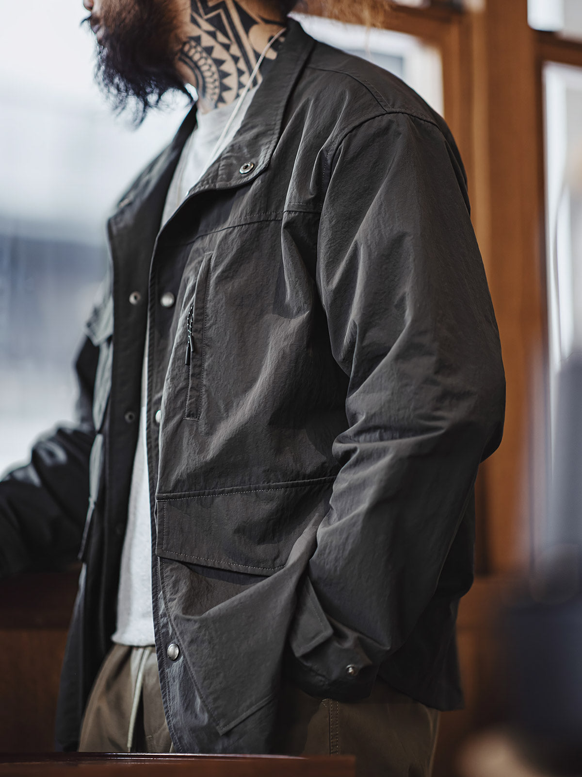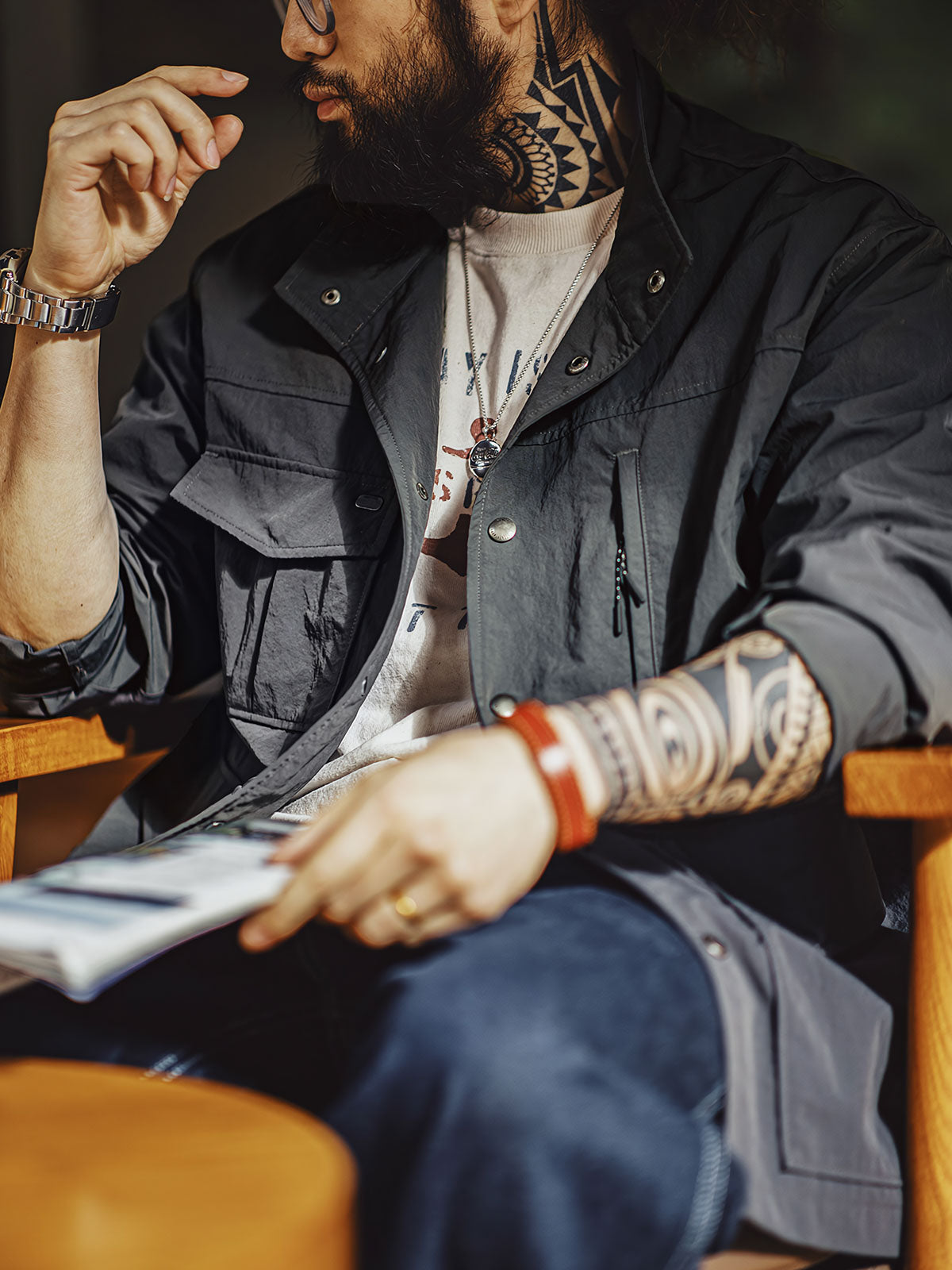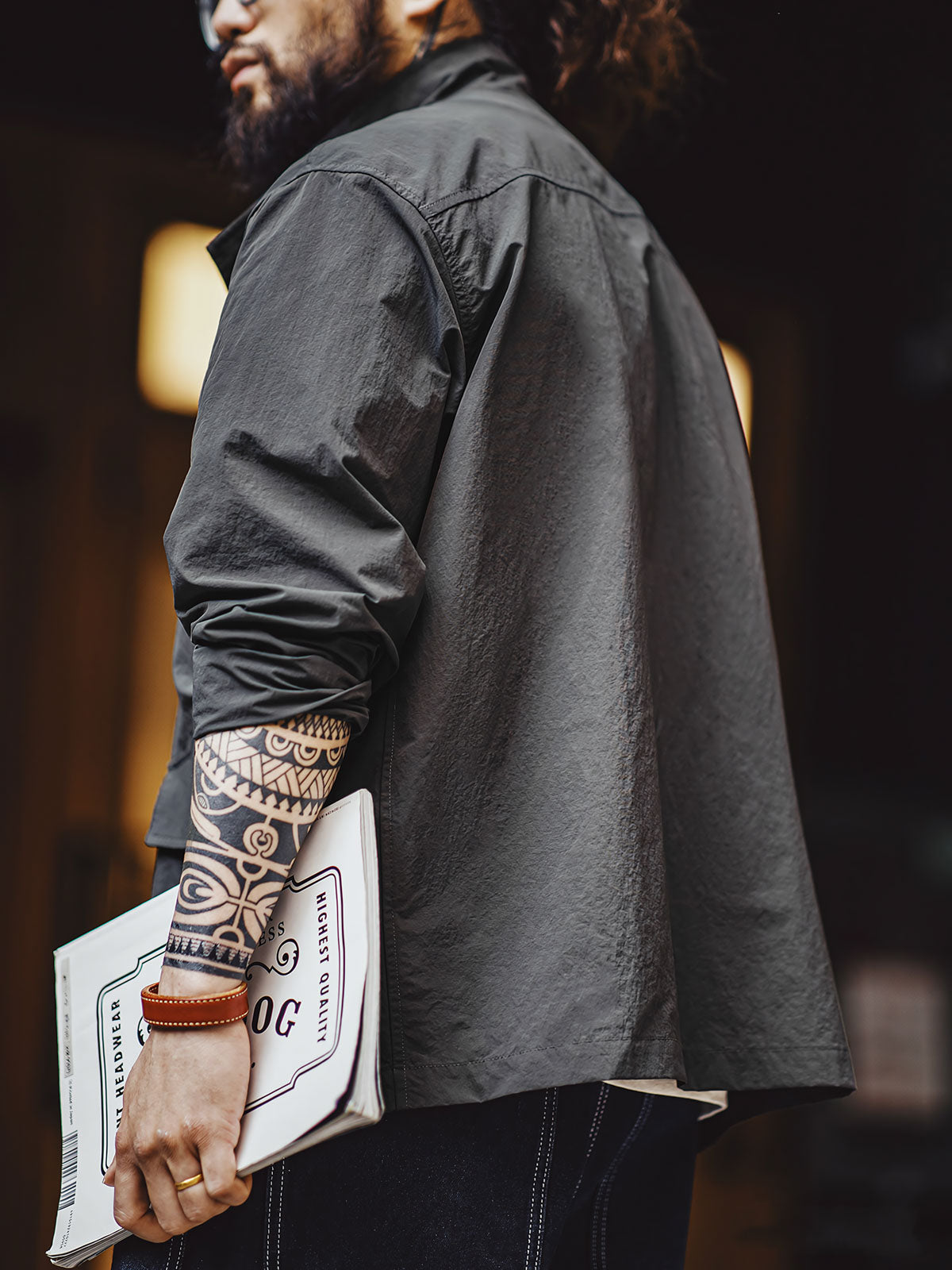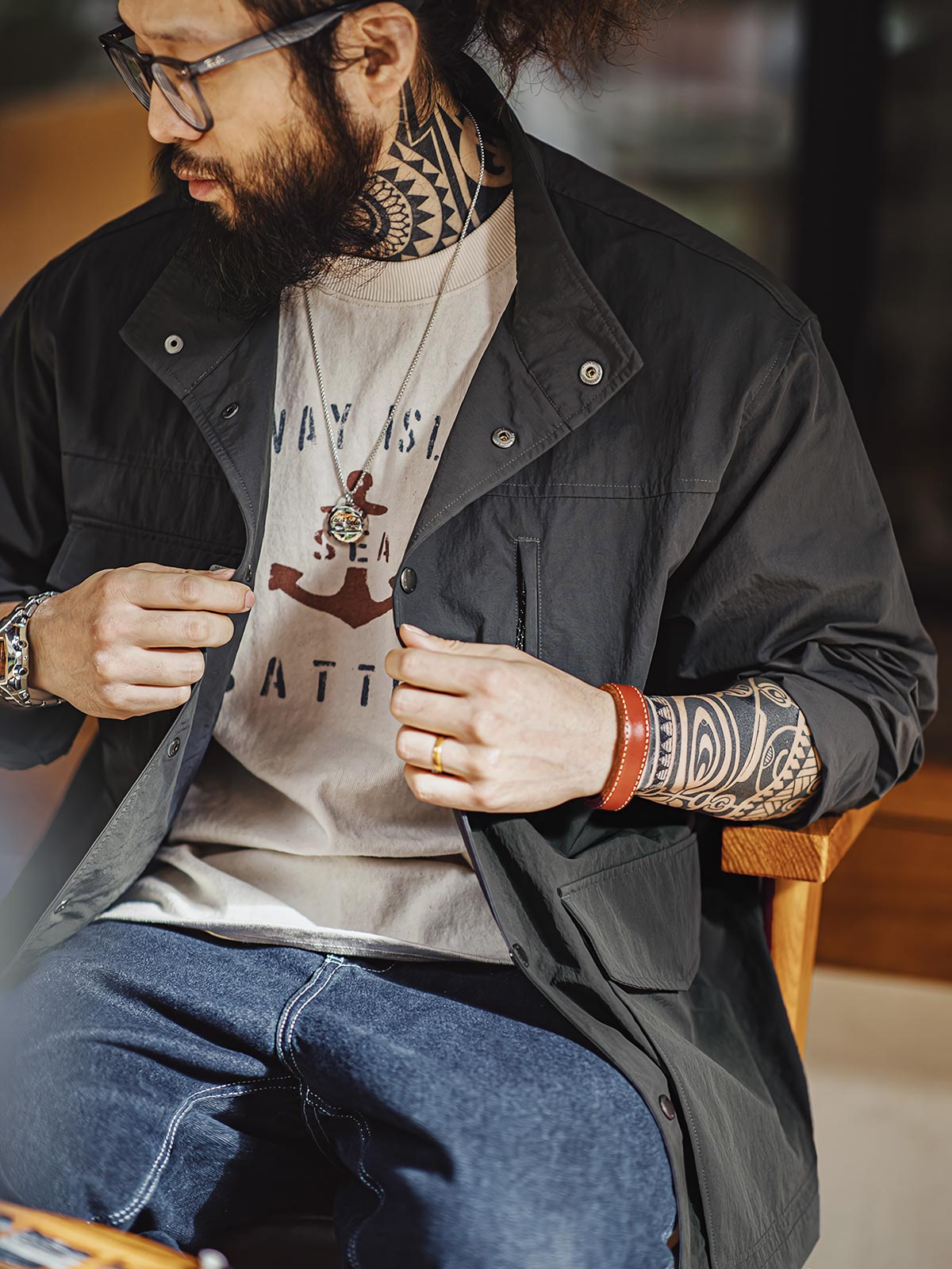 アウターとしてもお洒落な一品、ワークのディテールが冴え渡る本格的なデザイン。作業やアウトドア活動などの場面で活躍し、機能性とスタイルを兼ね備えています。秋口や早春のアウターとして、存在感のある見た目のみならず、実用性も兼ね備えた一枚。
