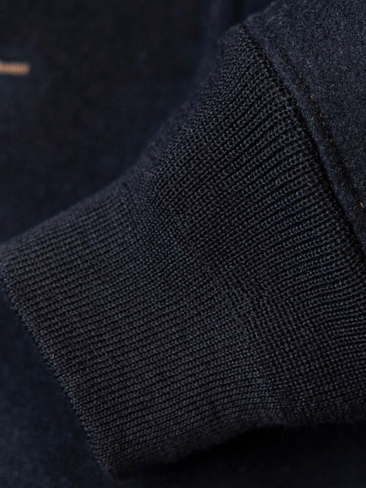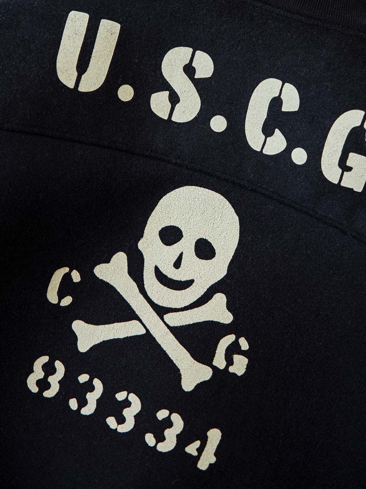 前胸と袖部分に施されたバッジデザインは、装飾要素だけでなく、飛行服の歴史への敬意を表現しています。ウール素材の使用はジャケットの保温性と耐久性を高め、精巧な縫製技術はブランドの品質追求を示しています。