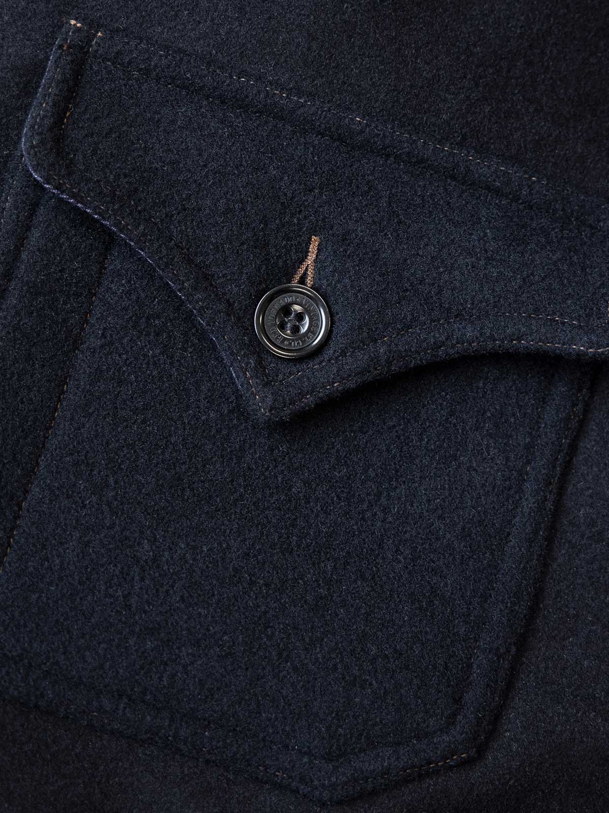 このA1ウールフライトジャケットは、豊かな軍服の歴史と文化を反映し、20世紀初頭のフライトジャケットのデザインを継承しています。開放式コックピットでの飛行士を保護するために設計されたこのジャケットは、ウール素材を採用し、オリジナルの保温性は保持しつつ、洗練された手触りと外観を提供します。
