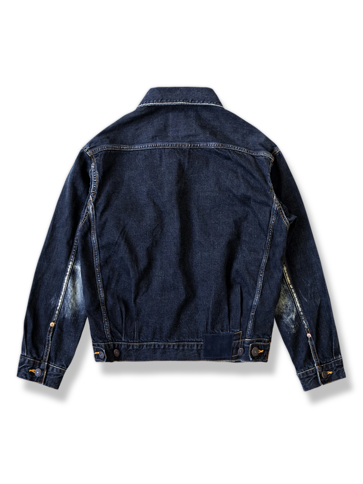 丁寧な手作業によるウォッシュ処理が、自然な風合いと経年変化の美しさを演出。サイドポケットのファスナーやオリジナルファスナープル、天然染料で染められた鹿革パッチ、カスタムメイドのレッドブロンズボタン、高強度のポリエステル縫製糸など、こだわりのディテールがジャケットに個性と品質を加えています。