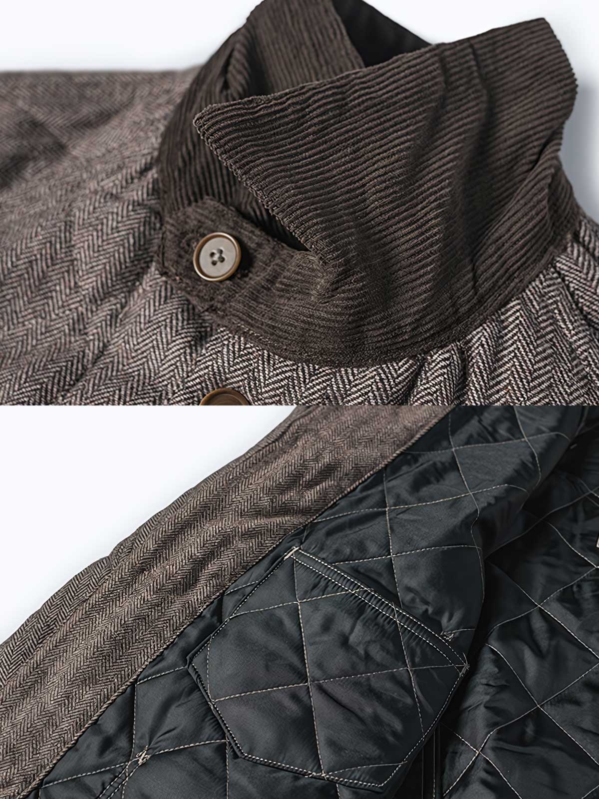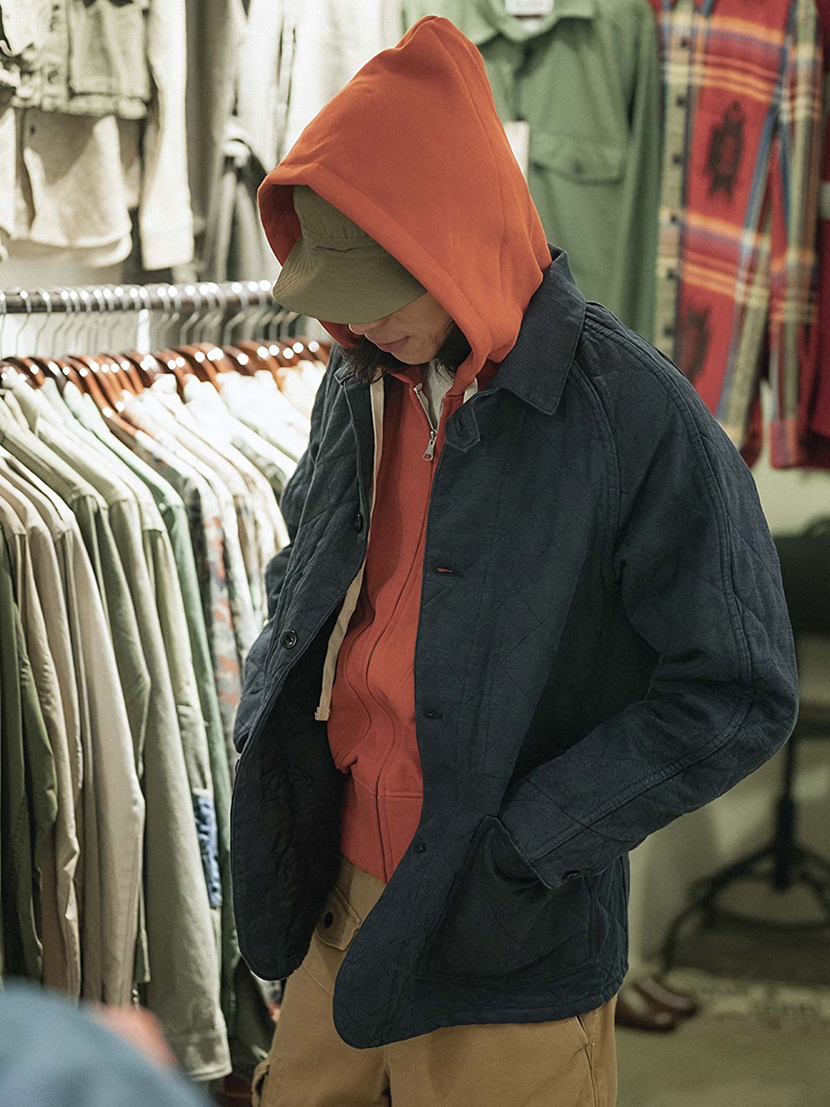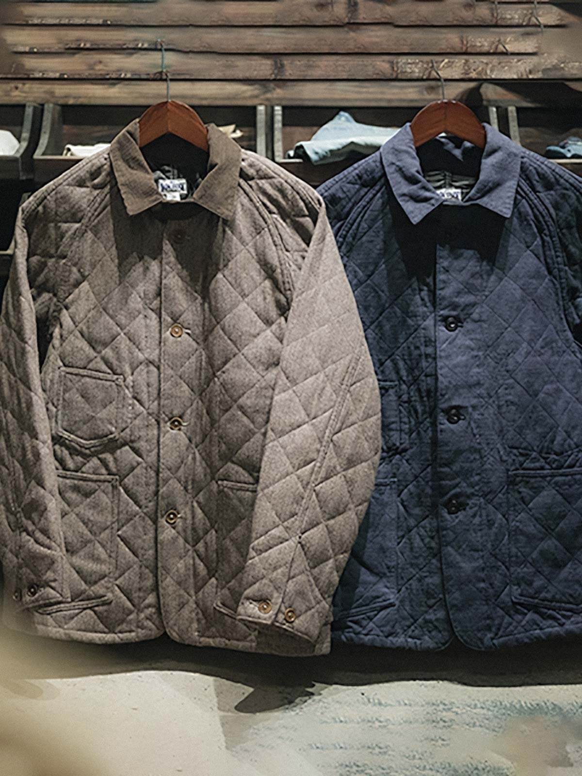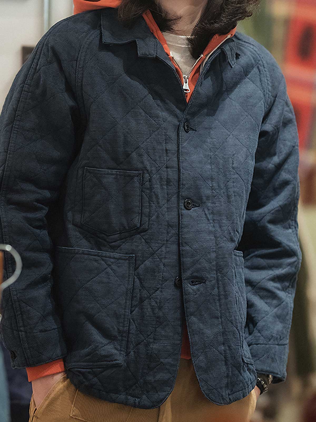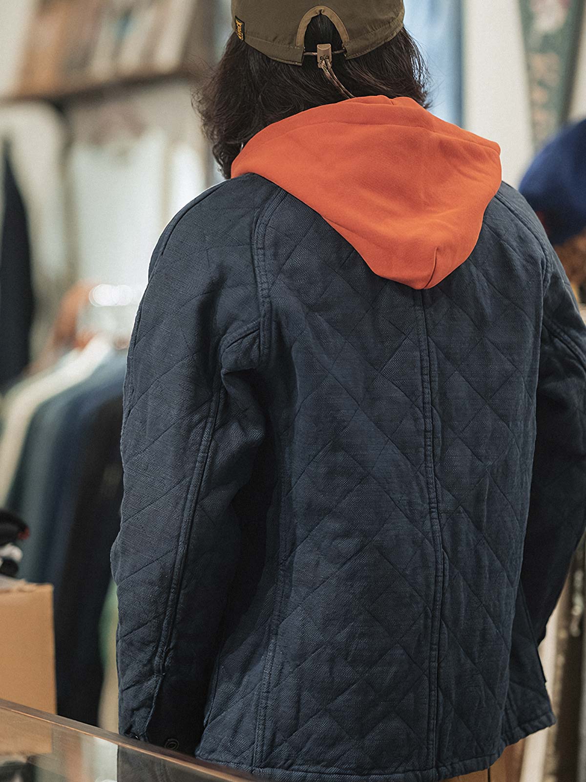 このワークジャケットは、アメリカンレトロスタイルを感じさせる美しいキルティングデザインで仕上げられています。フロントの大きなポケットは実用的で、アウトドア活動や日常使いに適しています。